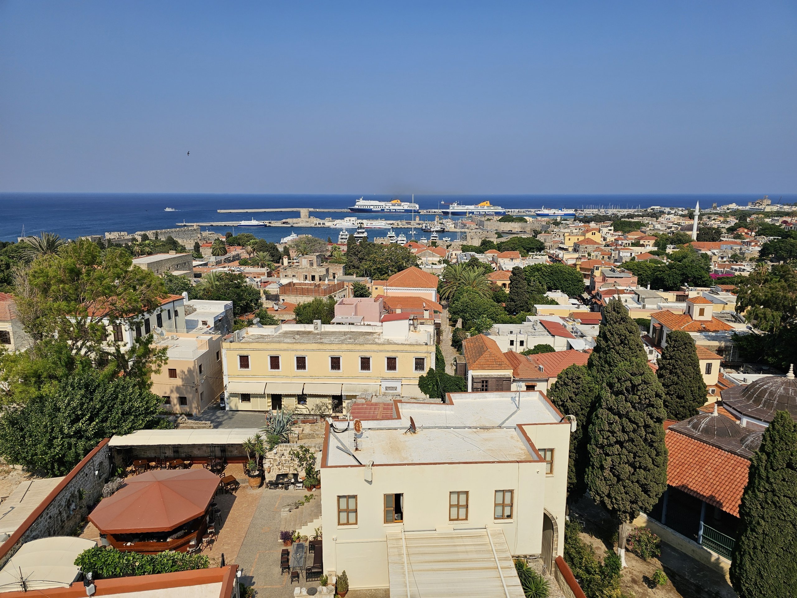 Klokketårnet er et av symbolene på gamlebyen og har den beste utsikten over Rhodos by. Blant lokalbefolkningen er det kjent som Roloi.