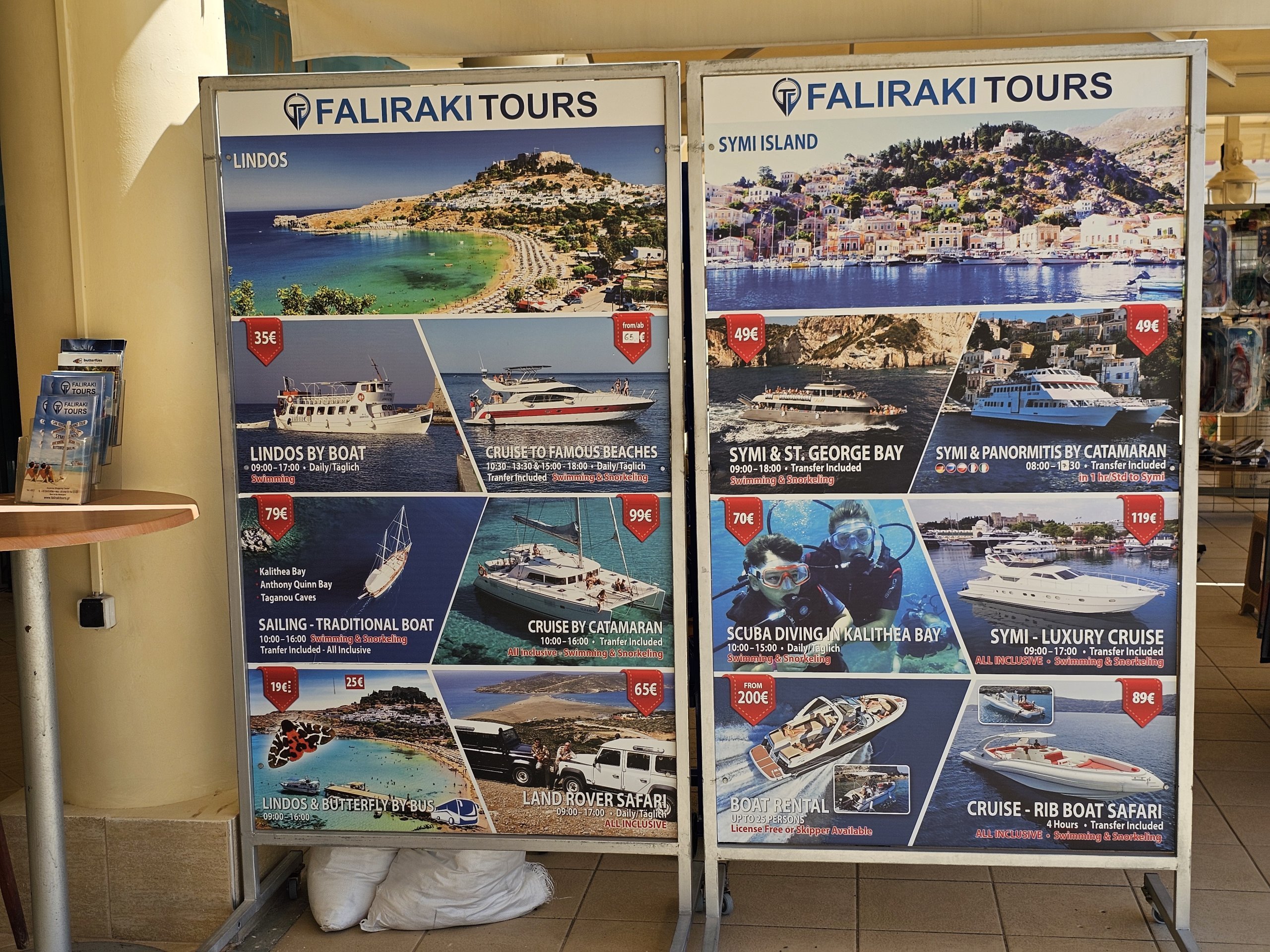 - cruise fra punkt A til punkt B (oftest til Lindos) - fra 20 euro