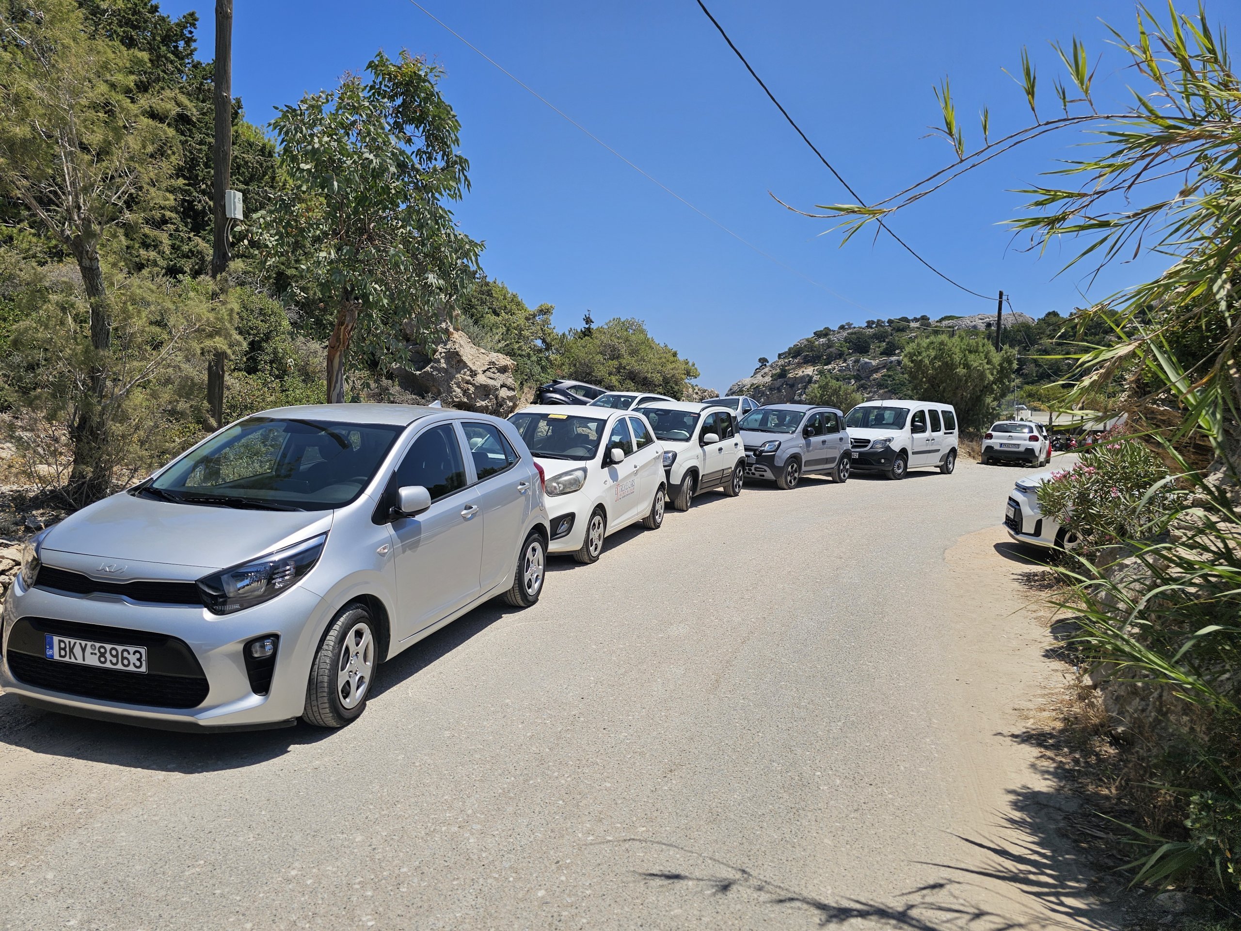 Hvis du reiser rundt på Rhodos med bil, kan du kjøre helt frem til stranden på en ganske godt merket vei.