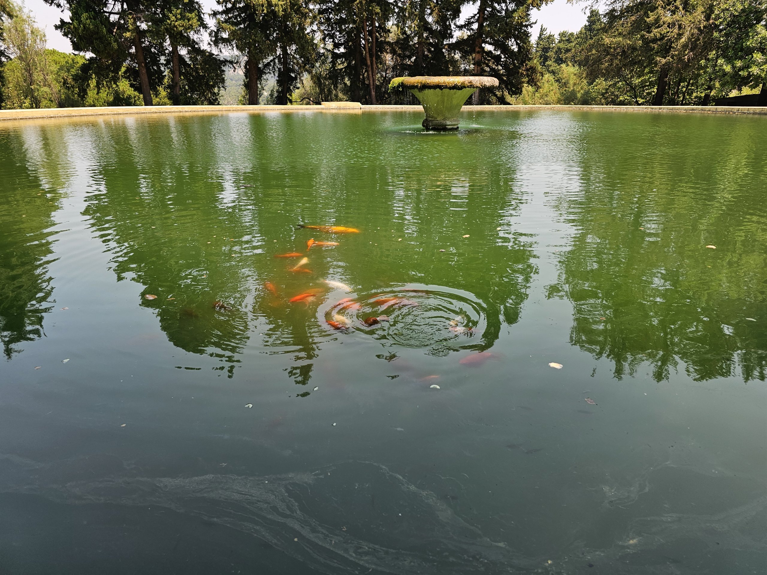 I fontenen lever den unike Gizan-fisken, som bare finnes på Rhodos, samt den dekorative koa-karpen.