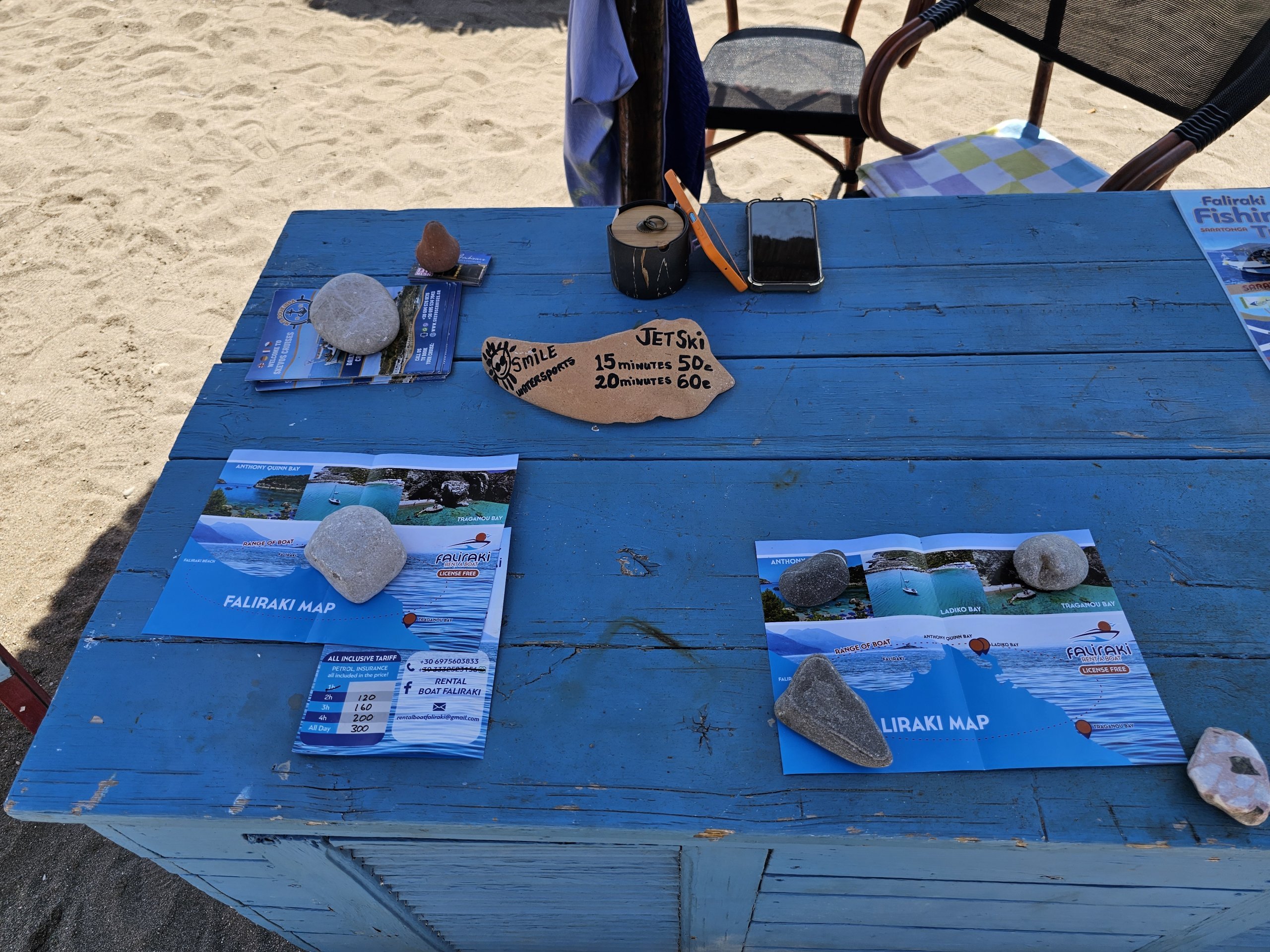 I Faliraki har du et komplett utvalg av underholdningsmuligheter til sjøs. Fra leie av tråbåt til parasailing, bananbåtturer eller vannski. Eksempler på priser:
