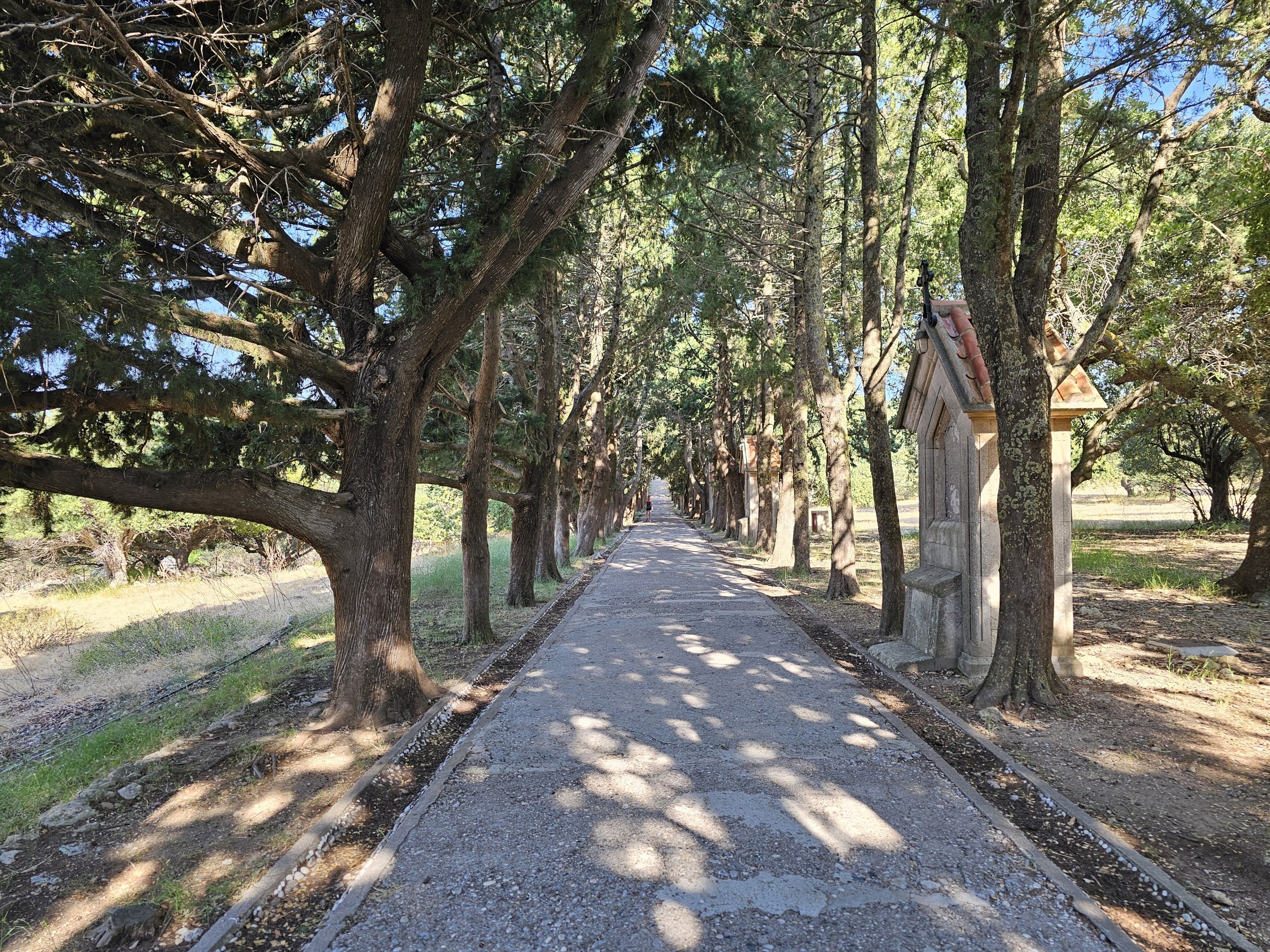 På den andre siden av parkeringsplassen fra klosteret kan du gå 300 meter langs den vakre alléen til det berømte Filerimos-korset, som ble reist i 1930.