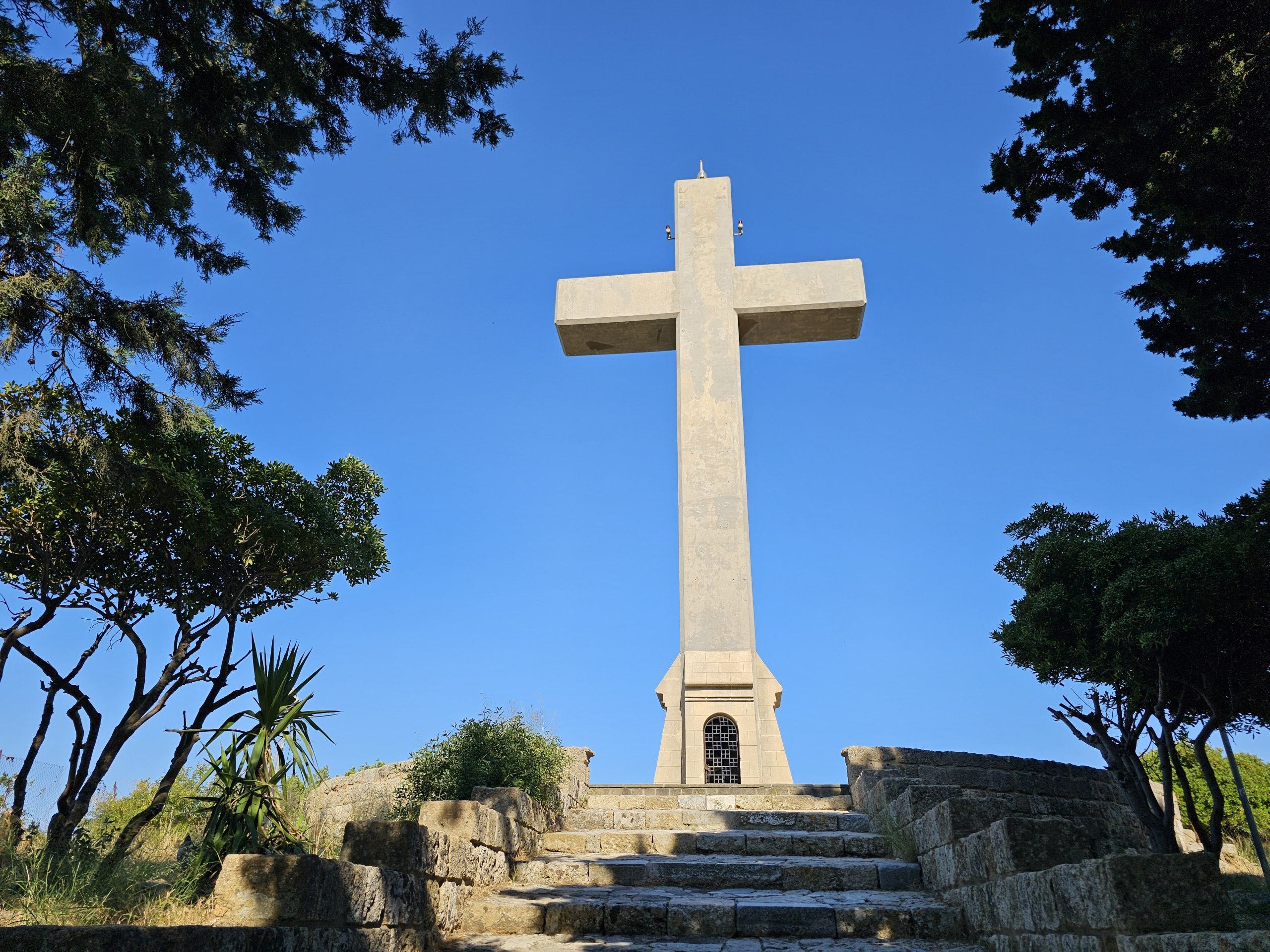 Fra korset har du et av de vakreste utsiktspunktene på hele Rhodos.