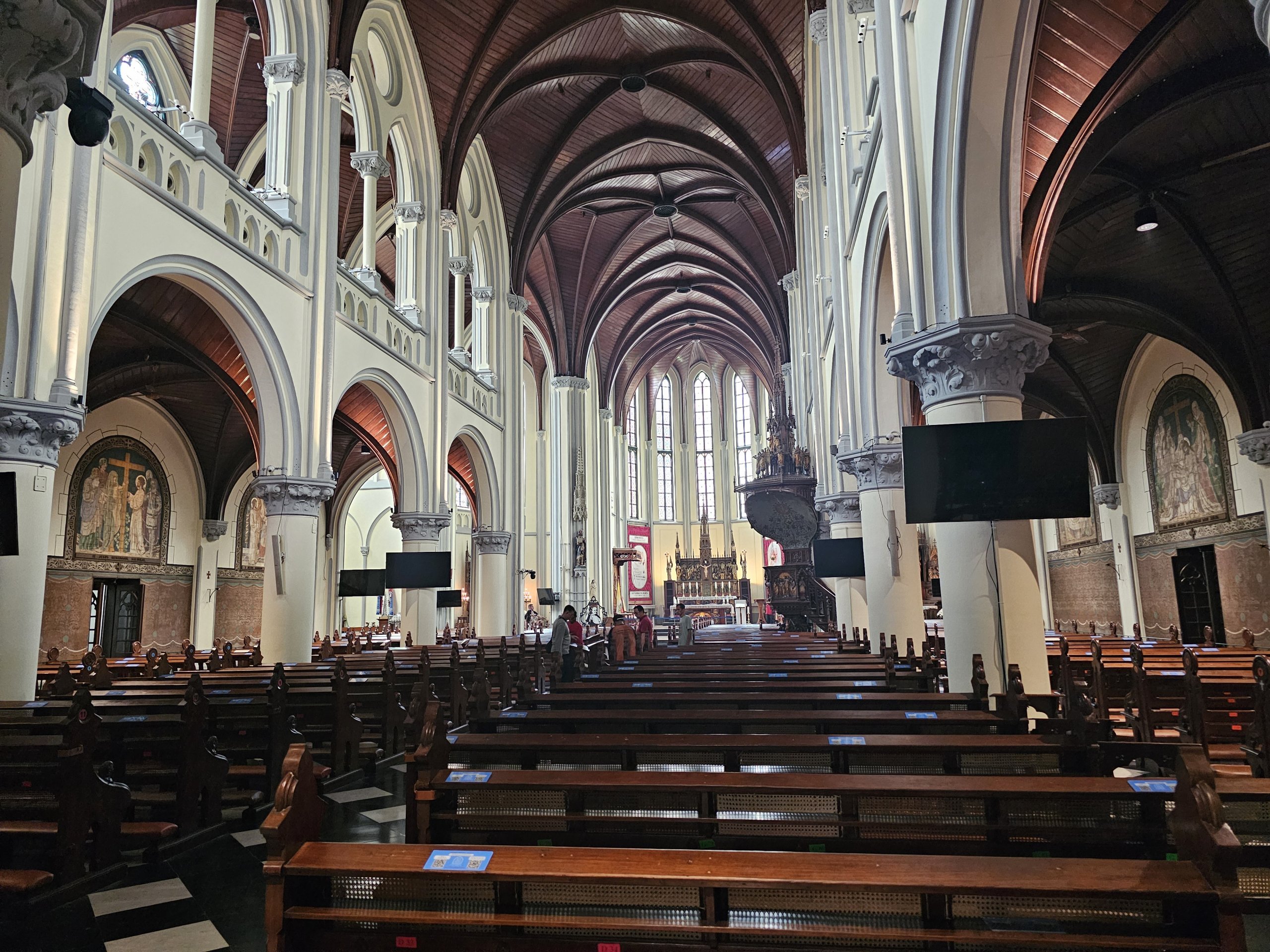 Katedralens interiør er bemerkelsesverdig på grunn av det vakre tretaket.