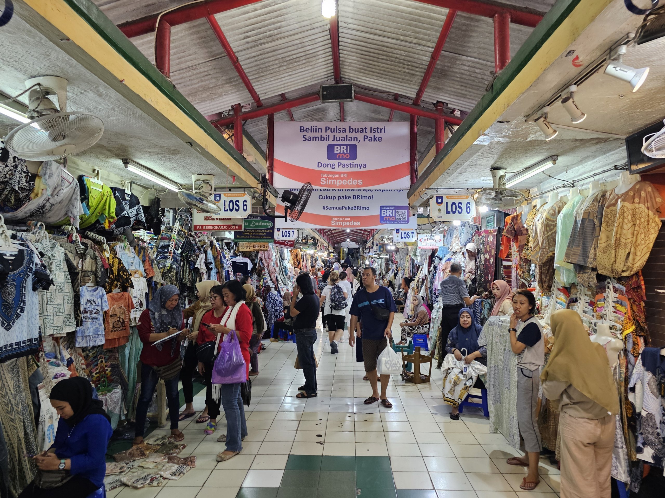 Beringharjo-markedet består av to deler - den overbygde hovedbygningen hvor du finner litt bedre og dyrere varer, hovedsakelig klær, kunsthåndverk og noen få suvenirboder.