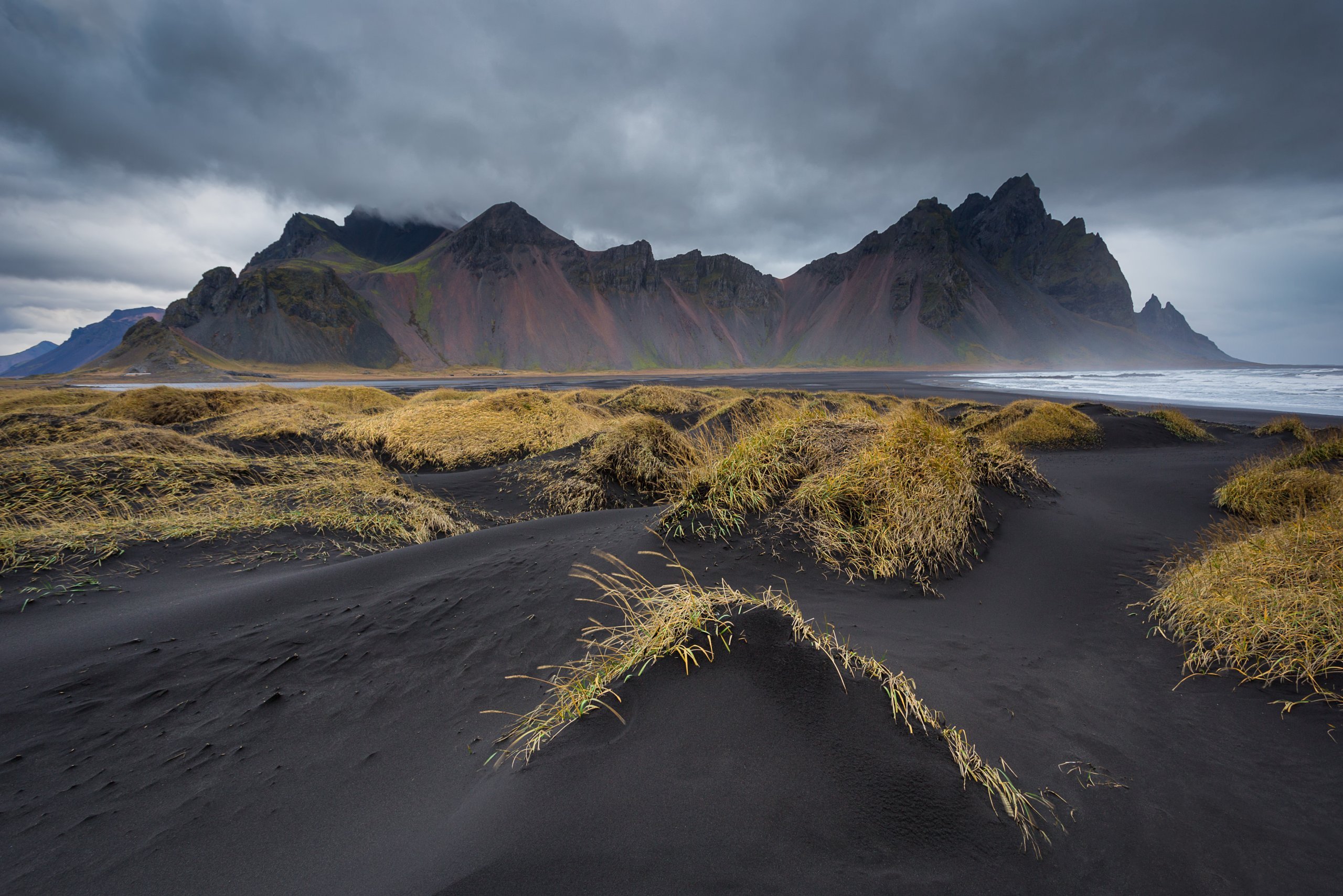Den lille fjellkjeden Vestrahorn på sørøstkysten er et av de mest fotograferte stedene på Island. Den dramatiske og presist definerte fjellkjeden i et foreldreløst landskap skaper et mystisk og magisk panorama.