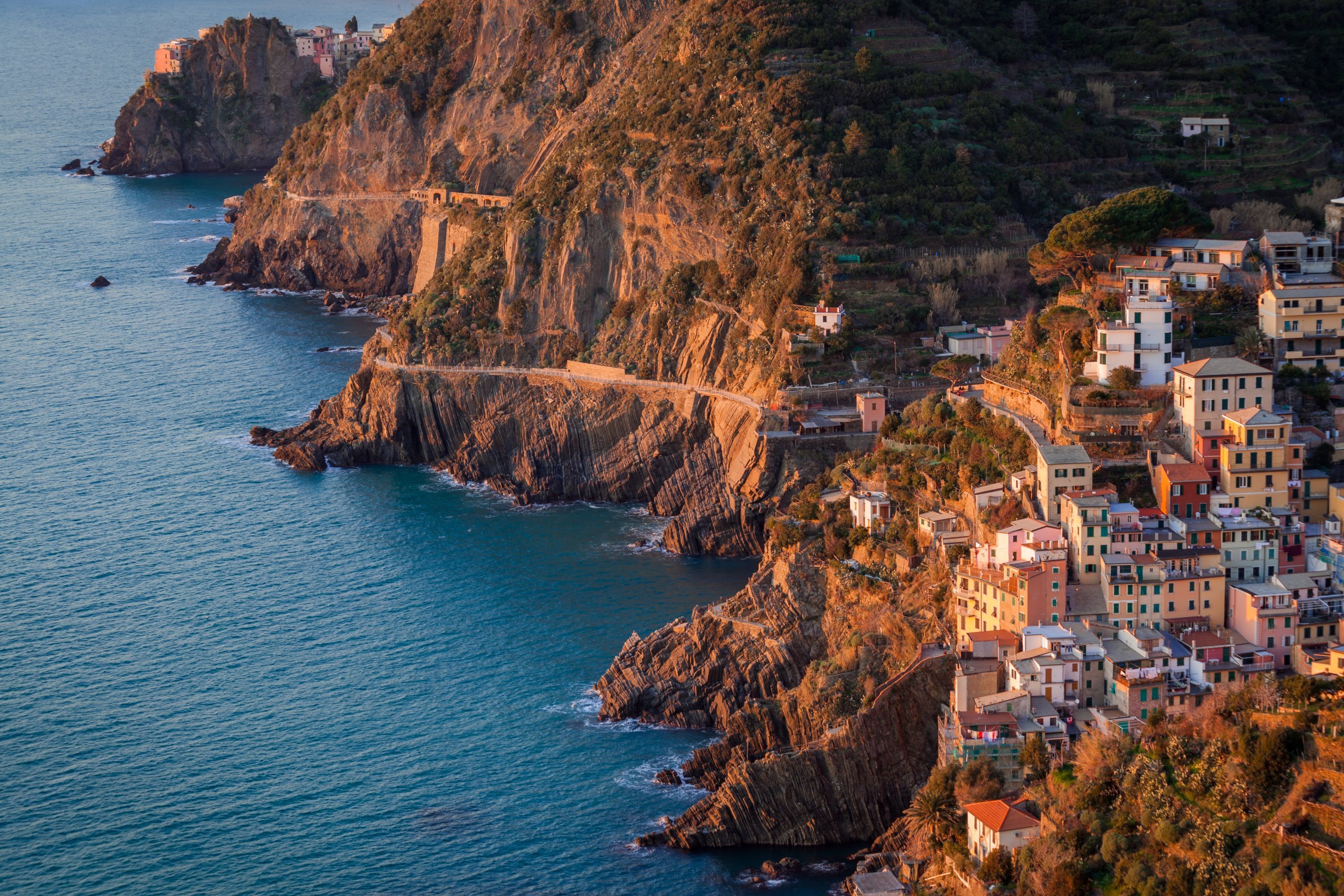 Navnet Cinque Terre (De fem land) kommer fra det middelalderske navnet på landsbyen (terre) - kysten er prydet av fem pittoreske landsbyer med fargerike hus som bokstavelig talt er klistret fast til klippene.