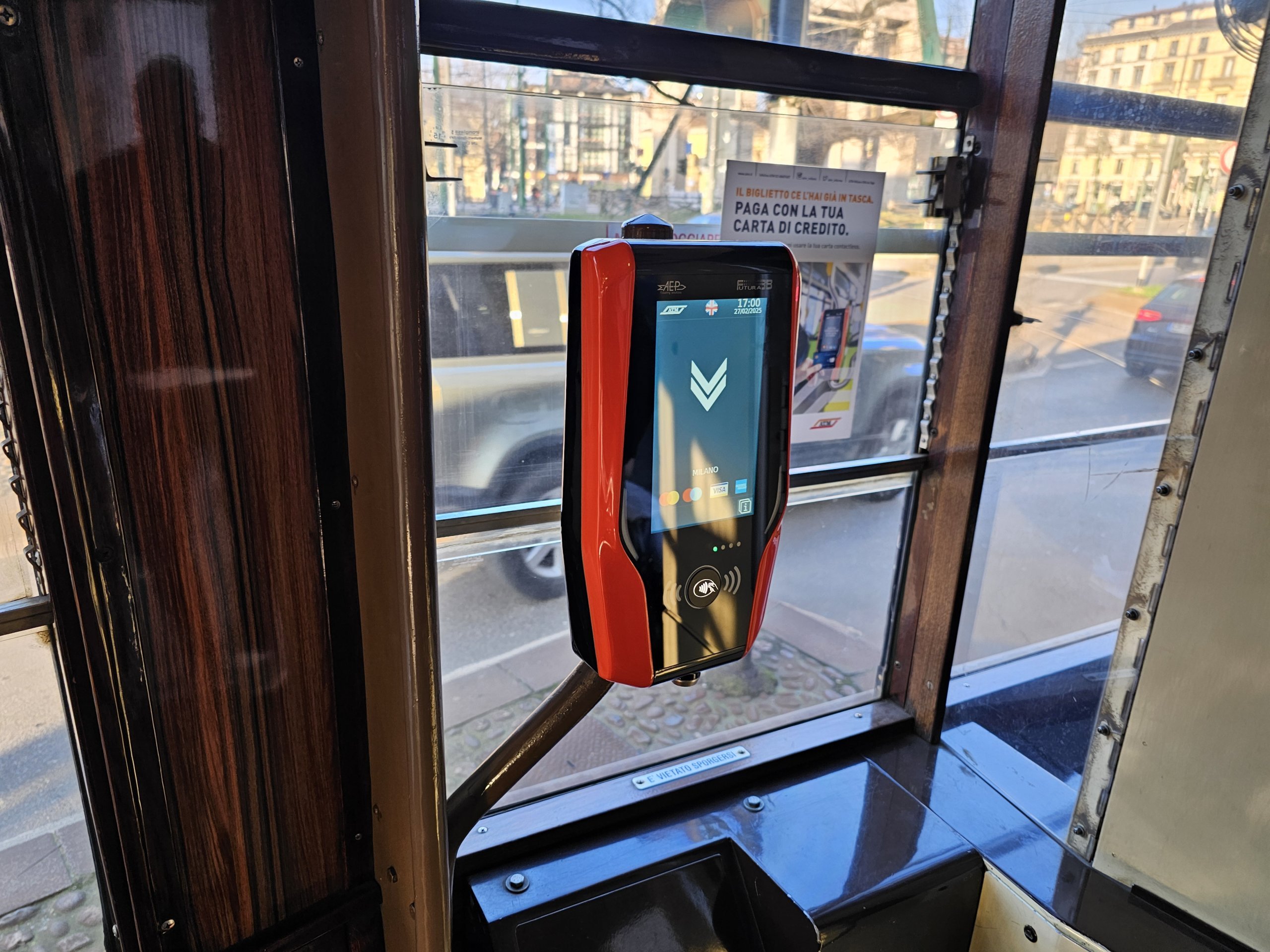 Det finnes ulike validatorer på trikkene for papirbilletter og for betaling med kontaktløst kort.