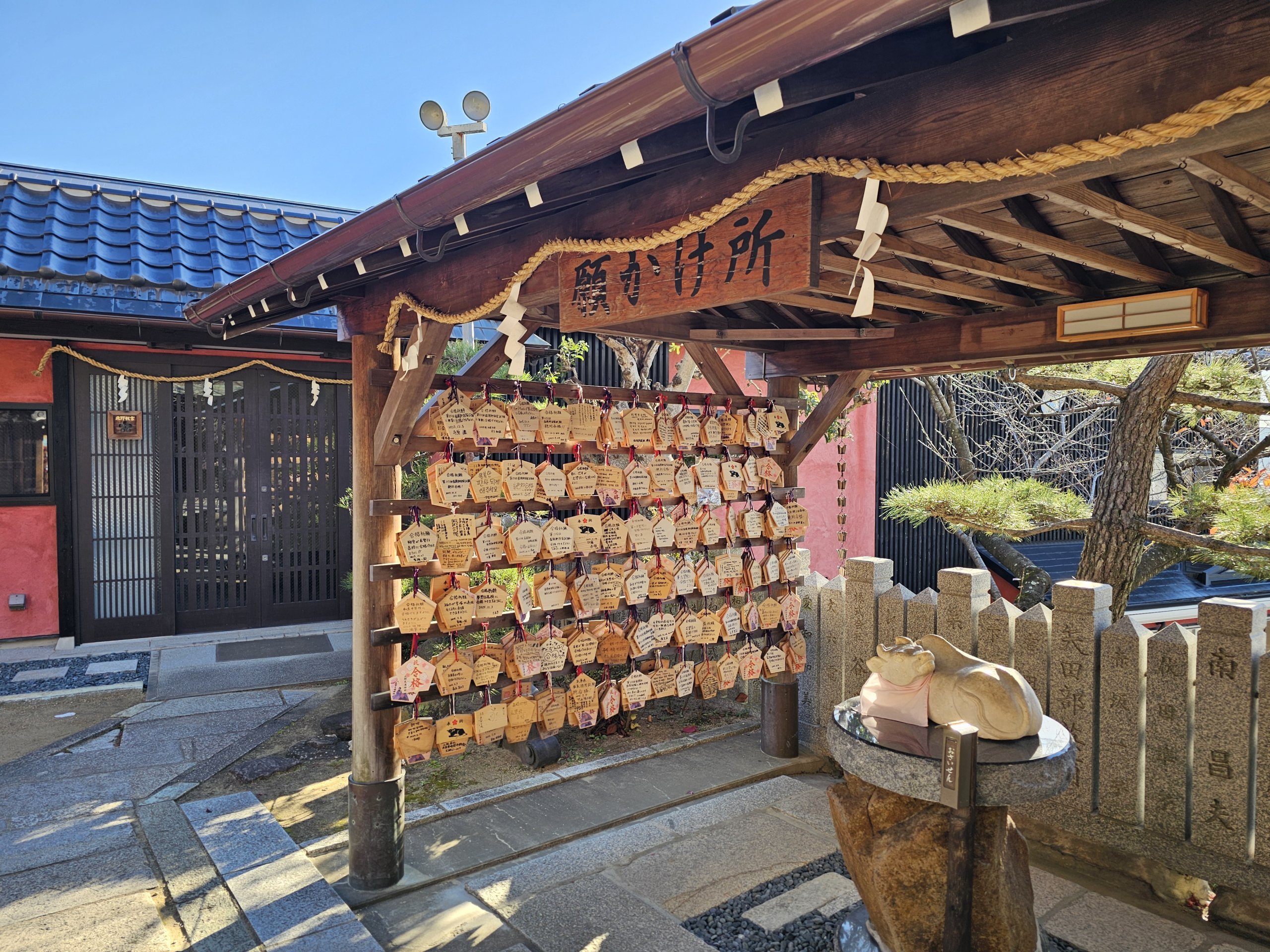 Midt i Kitano kan du også klatre opp bratte trapper til en liten shintohelligdom.