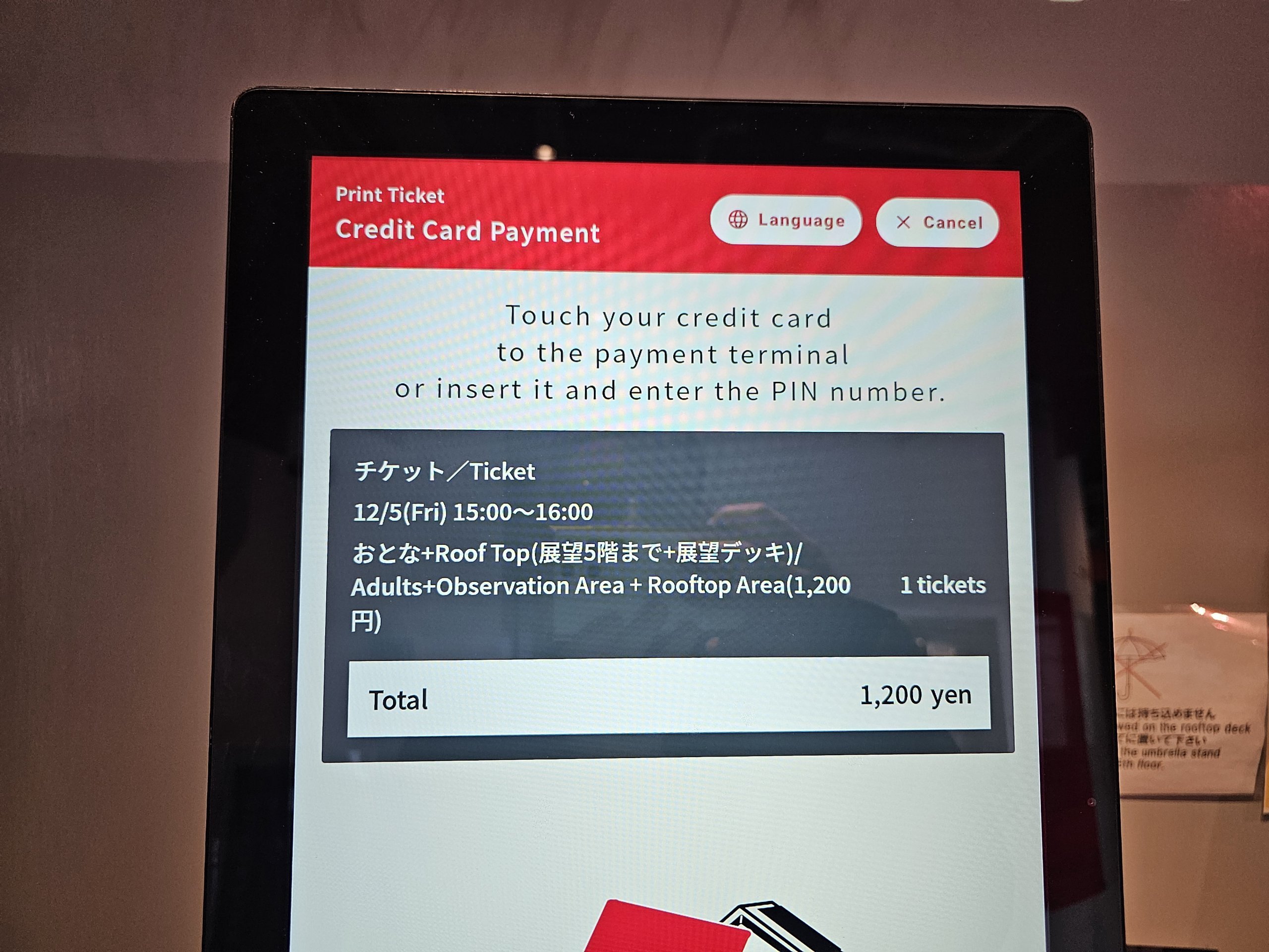 - 1 200 jpy - Hovedobservasjonsdekk + takgalleri