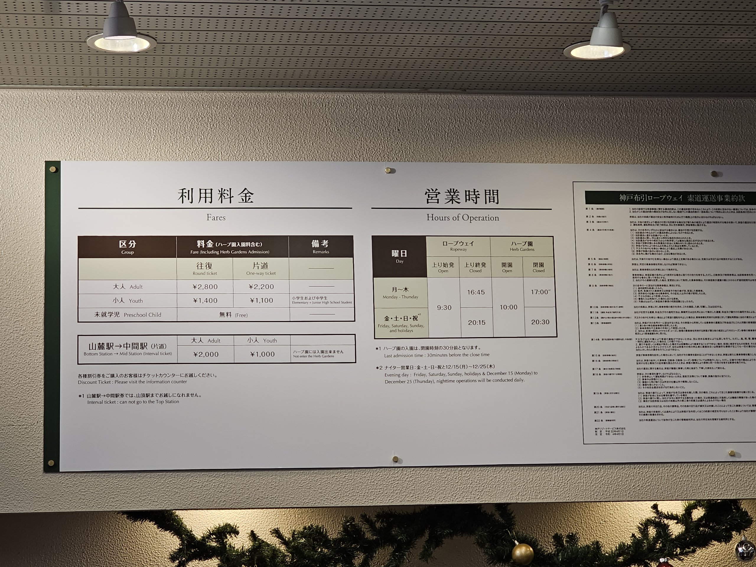 Detaljert og oppdatert informasjon på den offisielle nettsiden: kobeherb.com/no/hours-of-operation-and-fares.