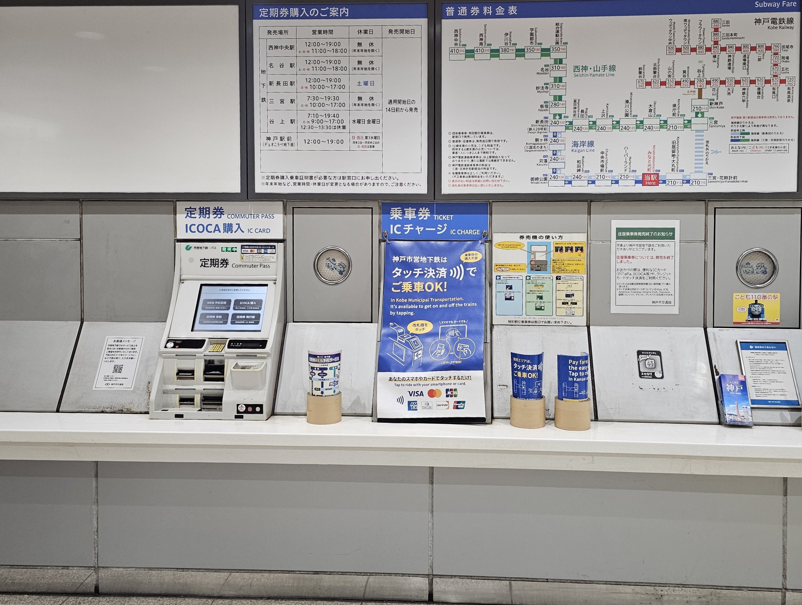ICOCA-kortet selges i Kobe eller Osaka, men du kan bruke hvilket som helst av de landsdekkende japanske kortene her, for eksempel Suica fra Tokyo.