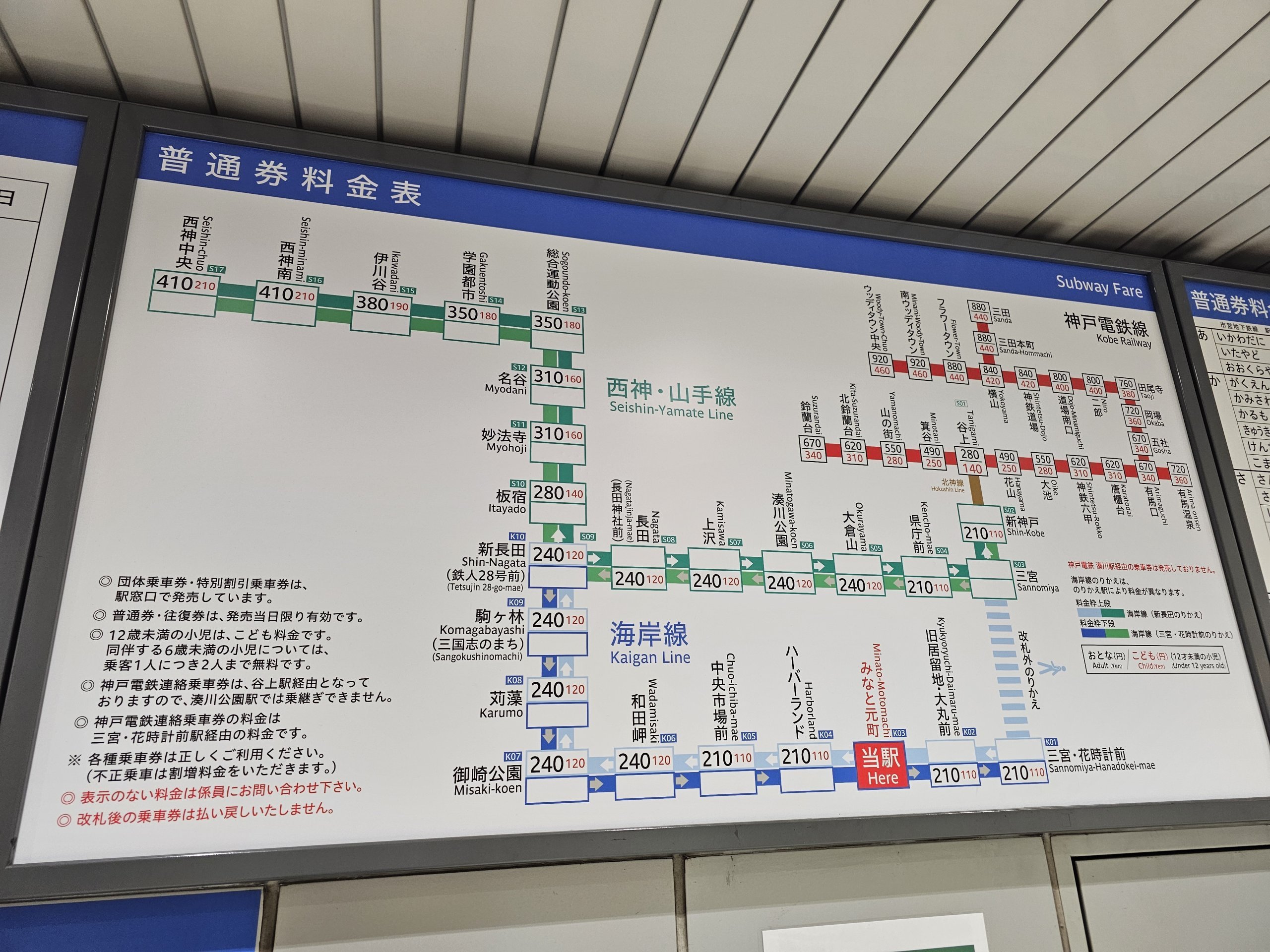 Unntaket er det lille sentrumsområdet rundt Sannomiya stasjon, hvor du bare betaler for 1 tur 120 jpy.