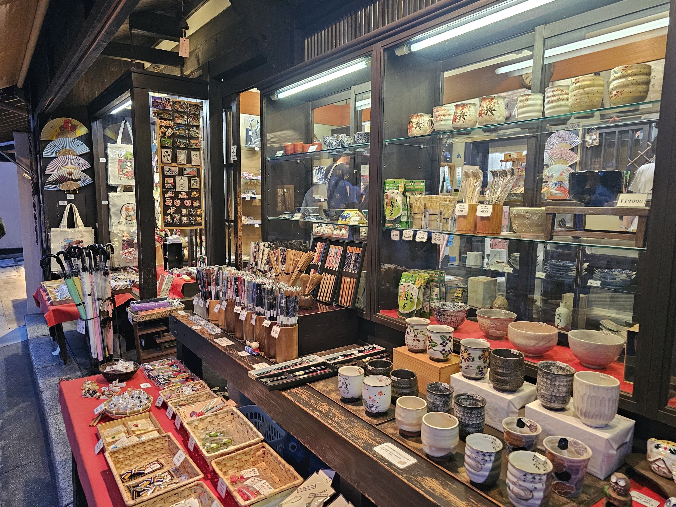 I motsetning til Gion, som hovedsakelig er hjemsted for tehus og tradisjonelle japanske restauranter, er Higashiyama mest kjent for sine suvenirbutikker, kafeer og curcas.
