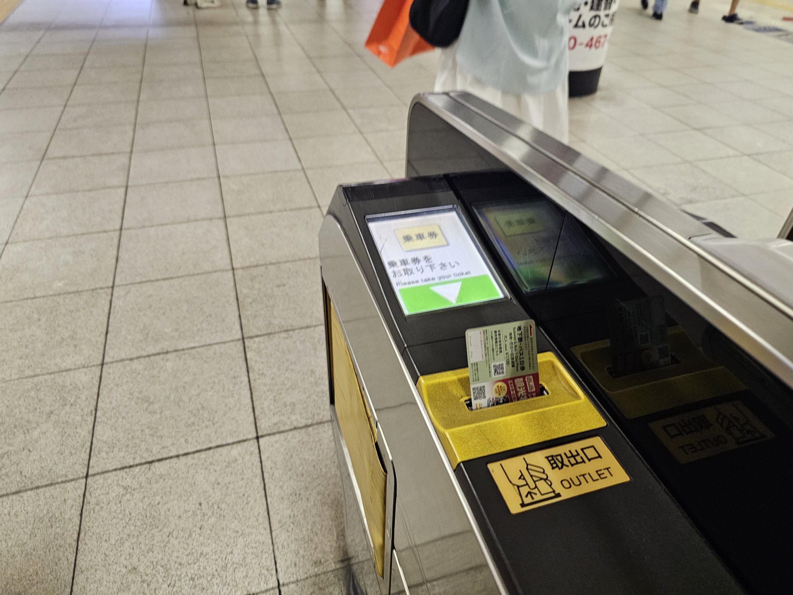 Hvis du bruker en enkeltbillett, beholder turnstilen billetten når du går ut. Hvis det er en dagsbillett, returnerer turnstilen den igjen.
