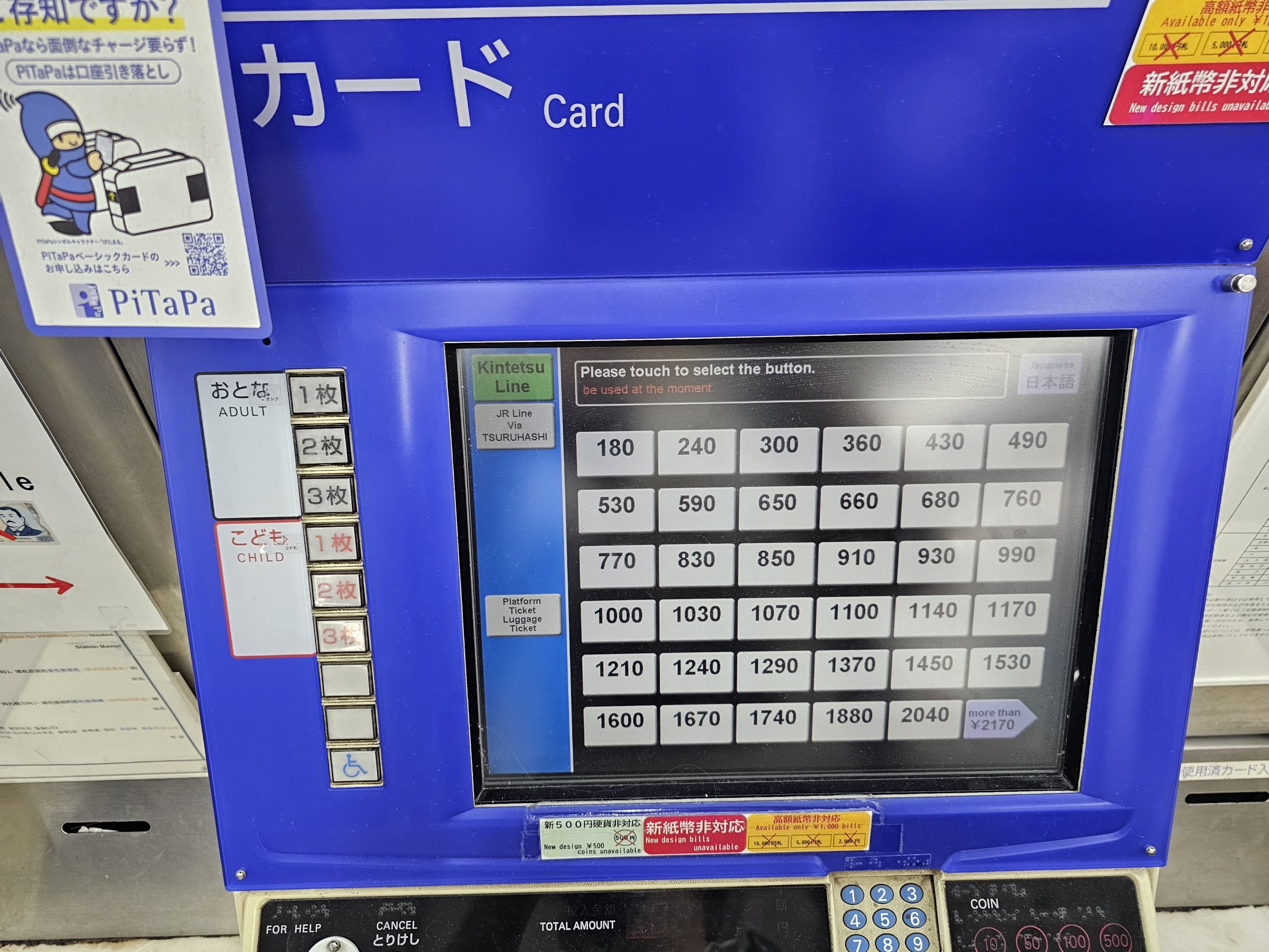 Du kan også betale med ett av 10 japanske transportkort (Icoca, Suica osv.). I dette tilfellet trenger du bare å ha nok penger på kortet og bare ta med kortet til turnstilen.