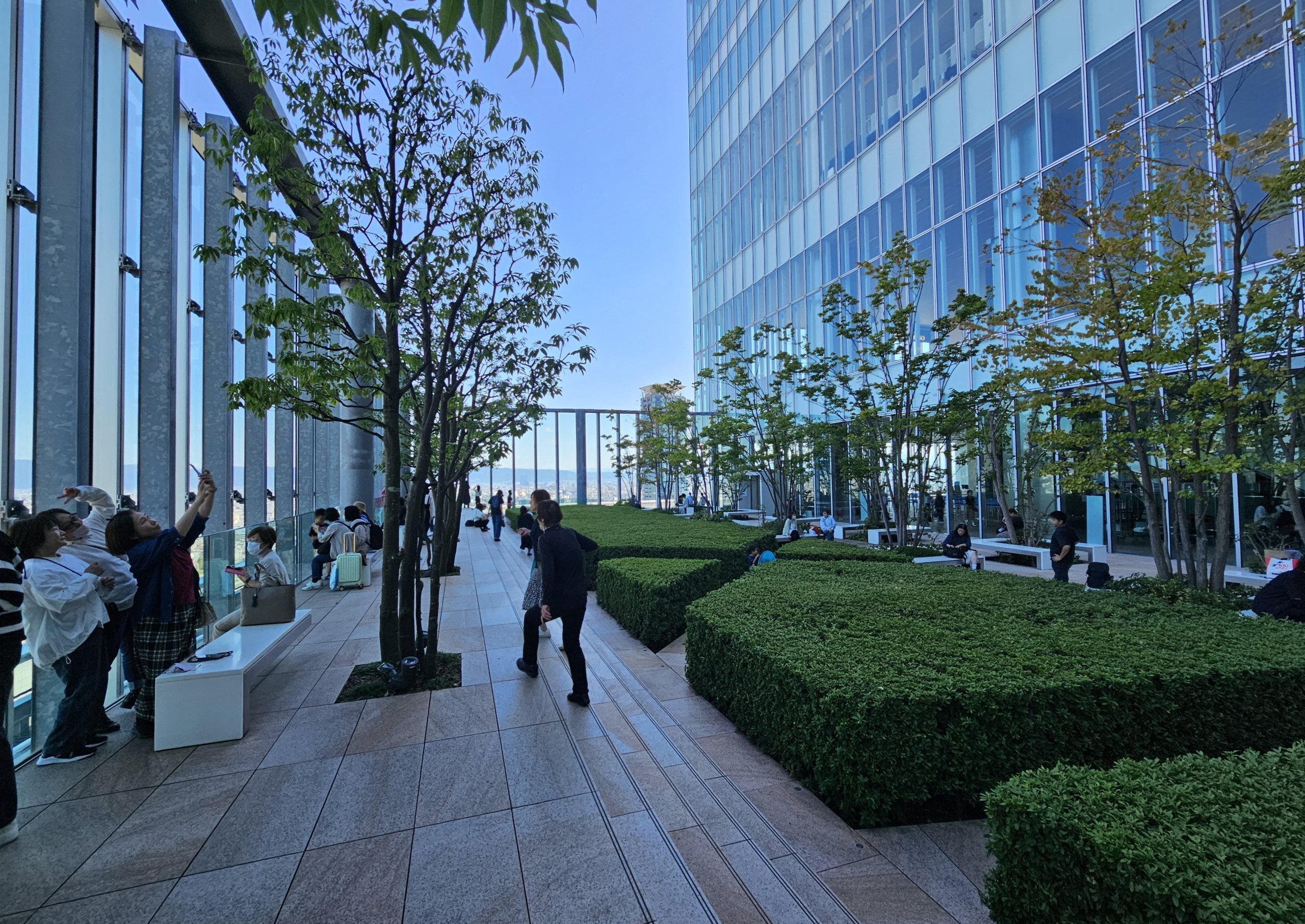 Observasjonsdekket er ca. 280 meter høyt, men du kan betale for å gå langs avsatsen ("Edge The Harukas") med en sikring på bygningens høyeste punkt, 300 meter.