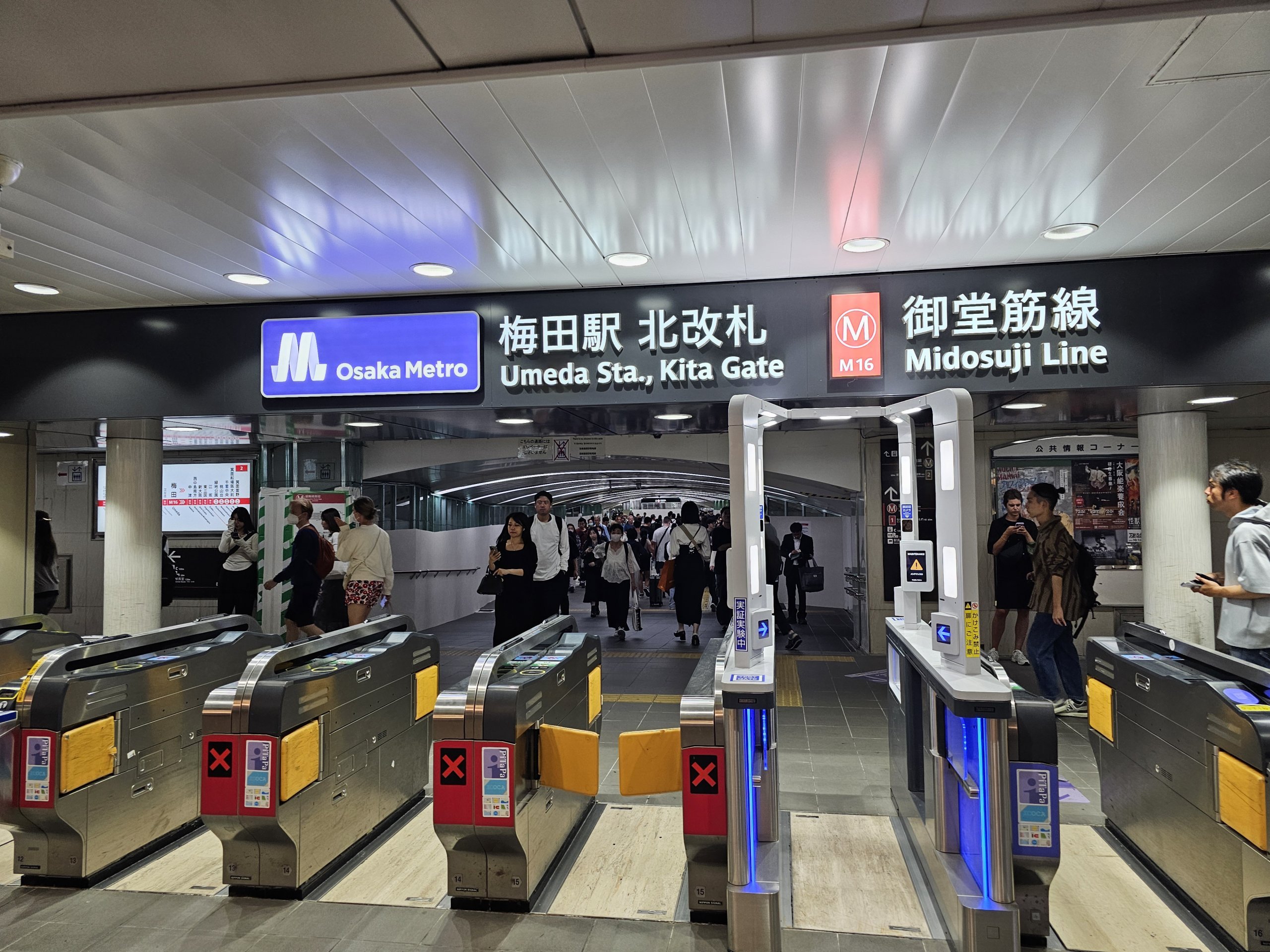 Du kan bruke tradisjonelle papirbilletter eller transportkort på Osaka Metro.
