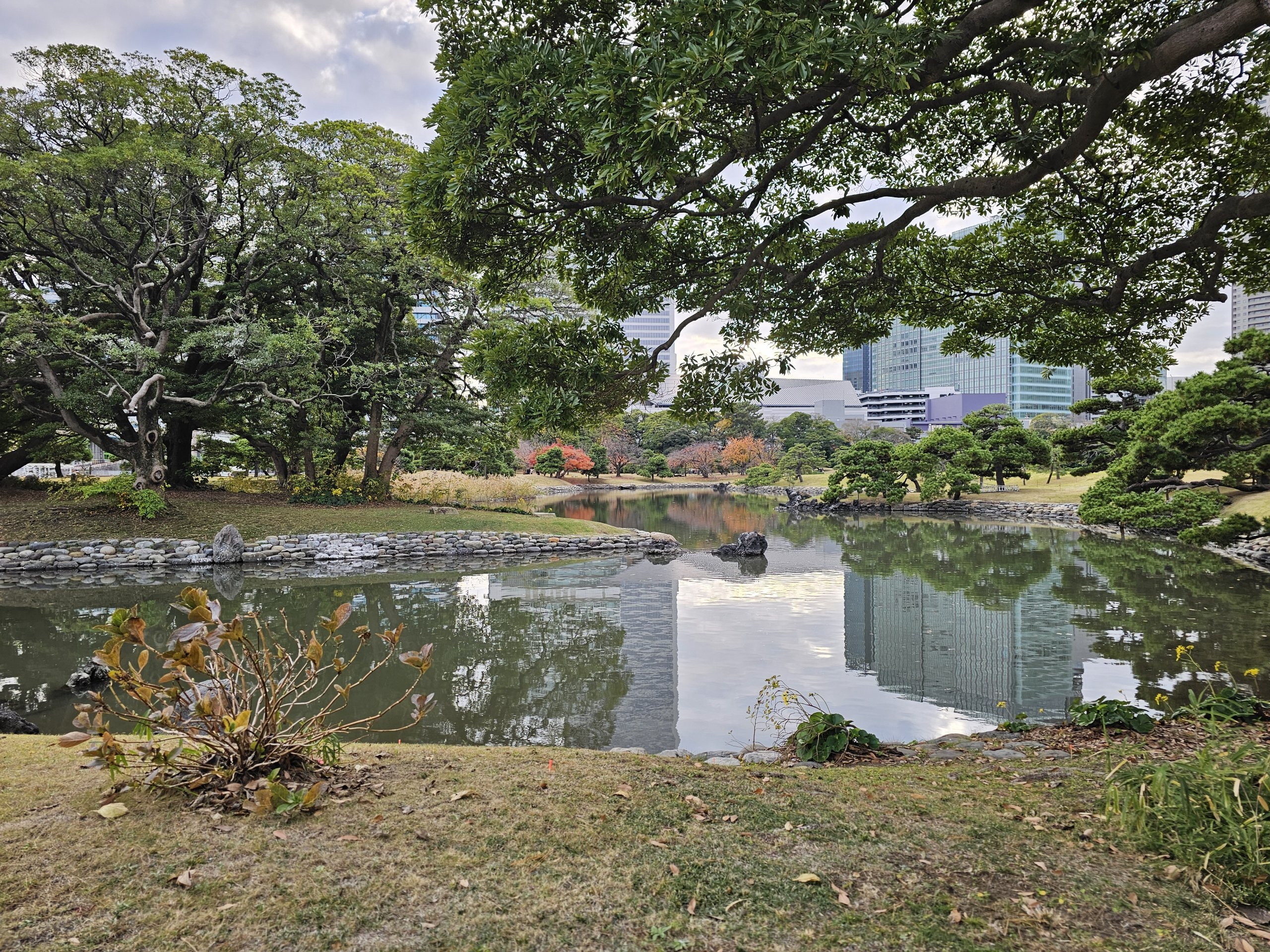 Hama-rikyu-hagene er blant de vakreste i sitt slag i Tokyo. Denne hagen står i sterk kontrast til omgivelsene, som består av både nye og gamle bygninger.