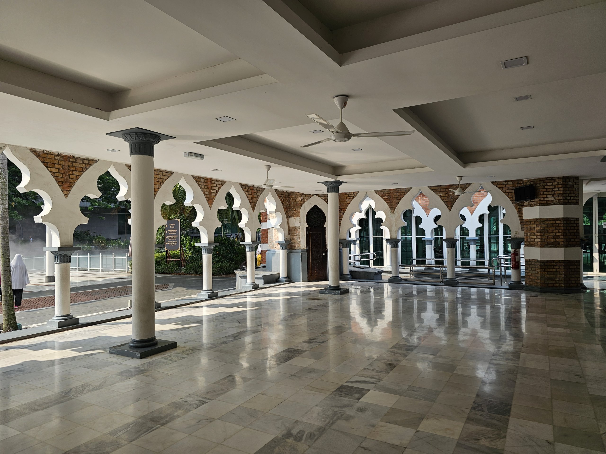 Moskeen ligger på et vakkert sted ved sammenløpet av elvene Klang og Gombak, som drukner i en moderne bebyggelse av høyhus. På spissen av halvøya som dannes ved sammenløpet av de to elvene, finner du inskripsjonen "Kuala Lumpur".