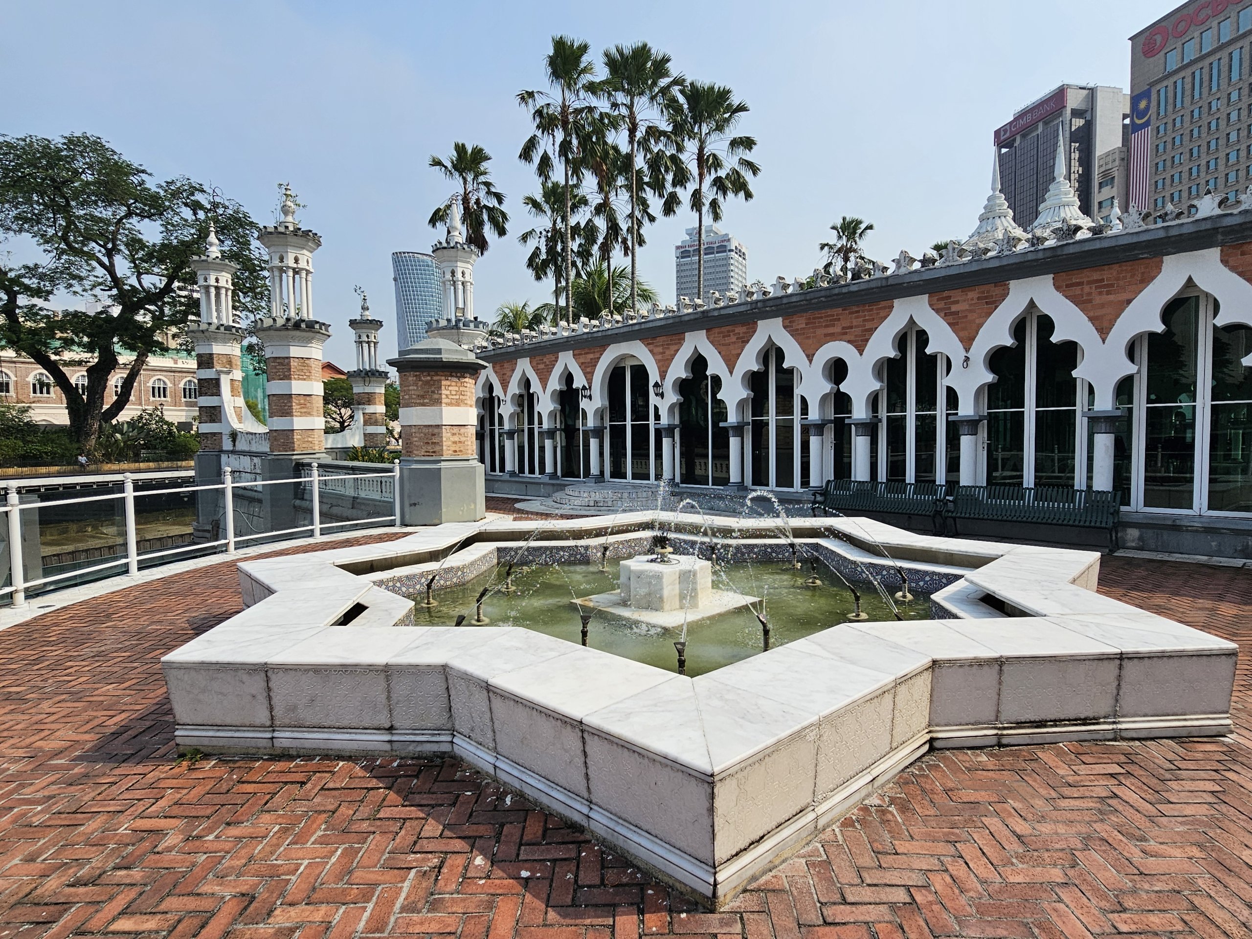 Masjid Jamek Sultan Abdul Samad, en av de eldste moskeene i Kuala Lumpur, ligger ved T-banestasjonen med samme navn midt i sentrum av byen.