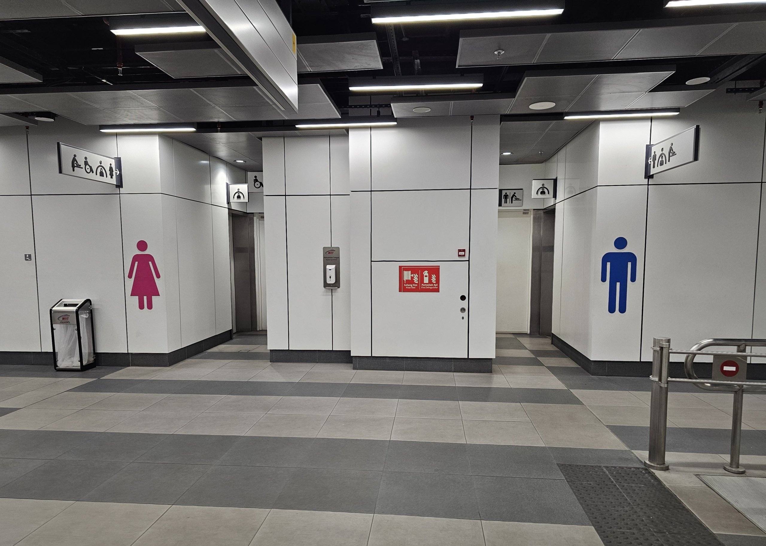 De nyeste stasjonene på den gule linjen er vanligvis utstyrt med gratis toaletter, men dette er ikke standard på andre ruter.