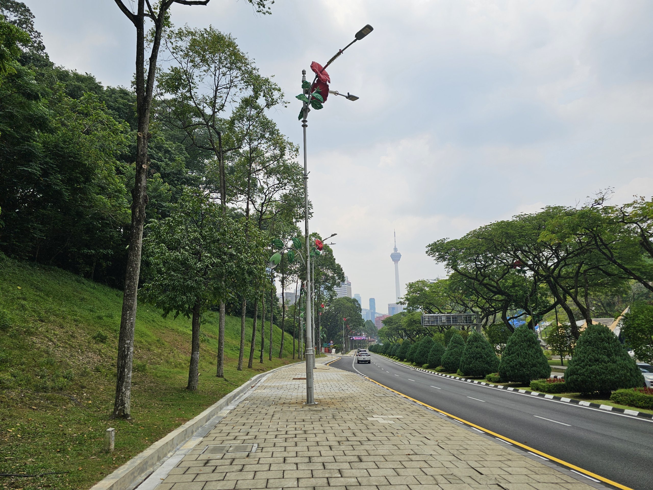 Alternativt kan du gå langs det brede fortauet langs Jalan Negara Street, som fører gjennom regjeringskvartalet forbi den malaysiske parlamentsbygningen. Dette fører til Merdeka-plassen.