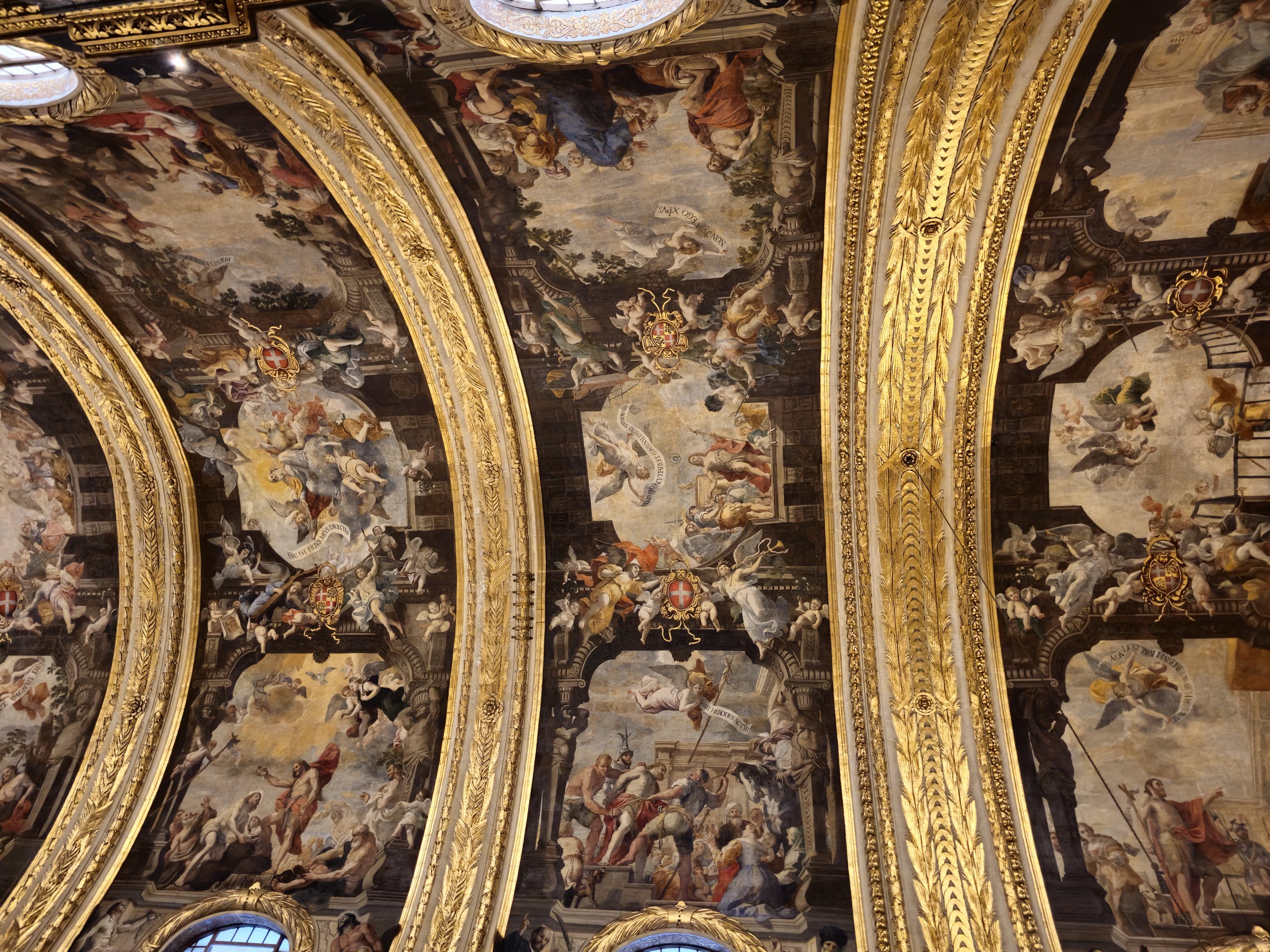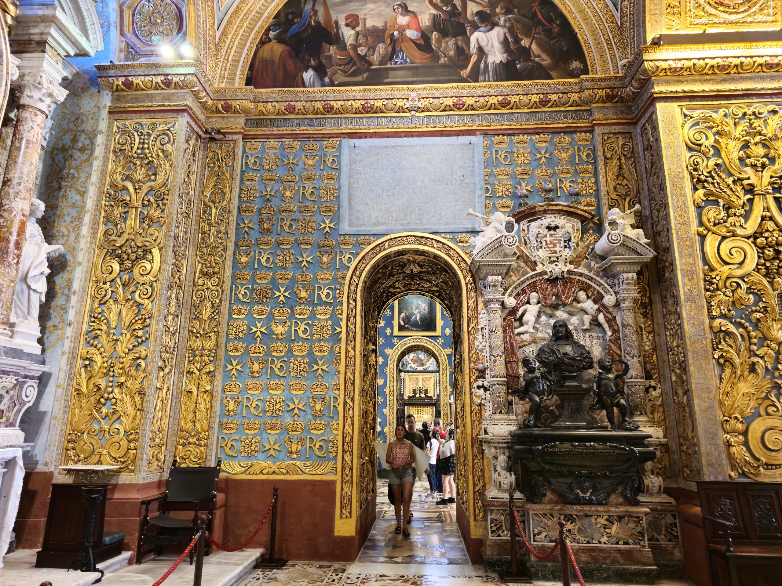 De bemerkelsesverdige maleriene kompletteres av rik gulldekorasjon og marmorsøyler og -gulv.