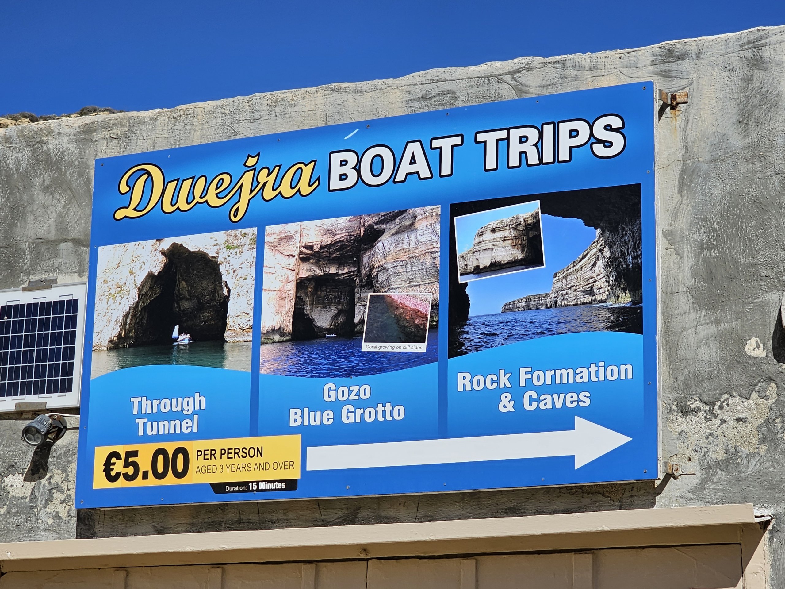 For mer enn 5 euro kan du ta en 15-minutters båttur gjennom en tunnel ut til det åpne havet. Du vil også kunne se stedet Azure Window.