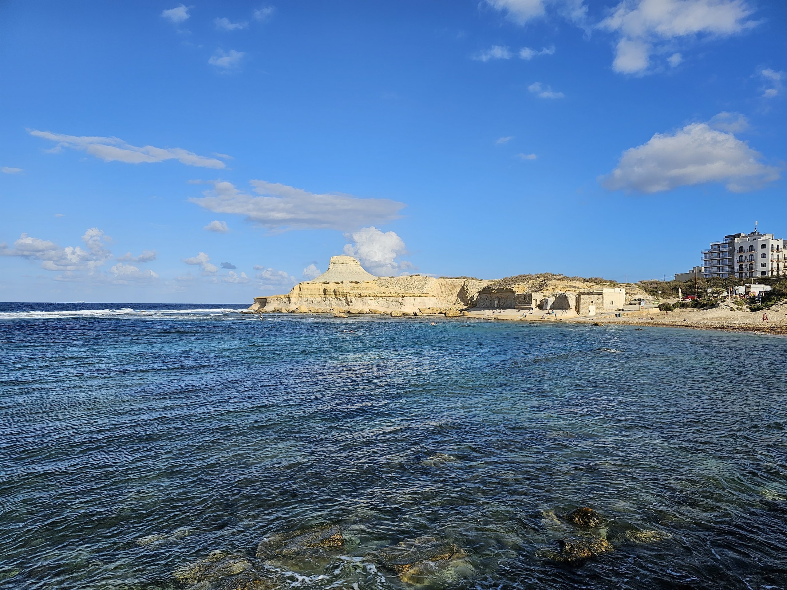 En mindre sandstrand finner du bare i den vakre Xwejni-bukten, ca. 1 km vest for Marsalforn sentrum.