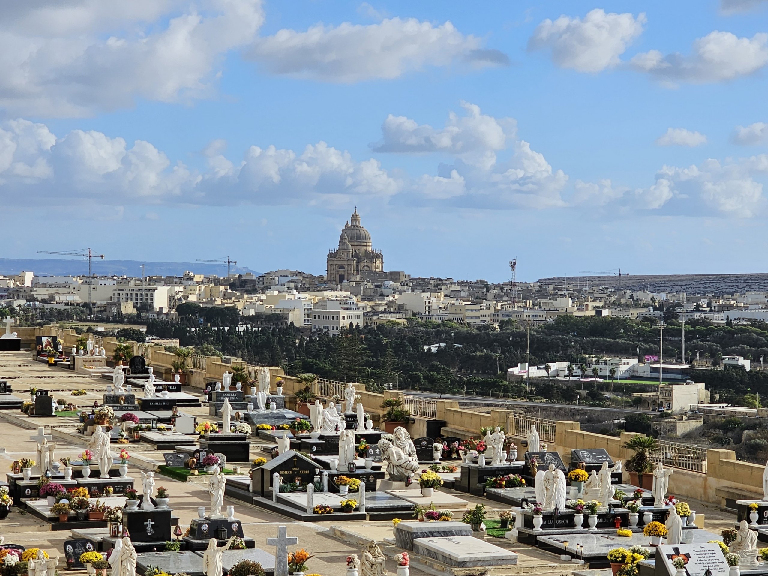 - Utsikten fra kirkegården i Xaghra (plassering på Google.com/maps)