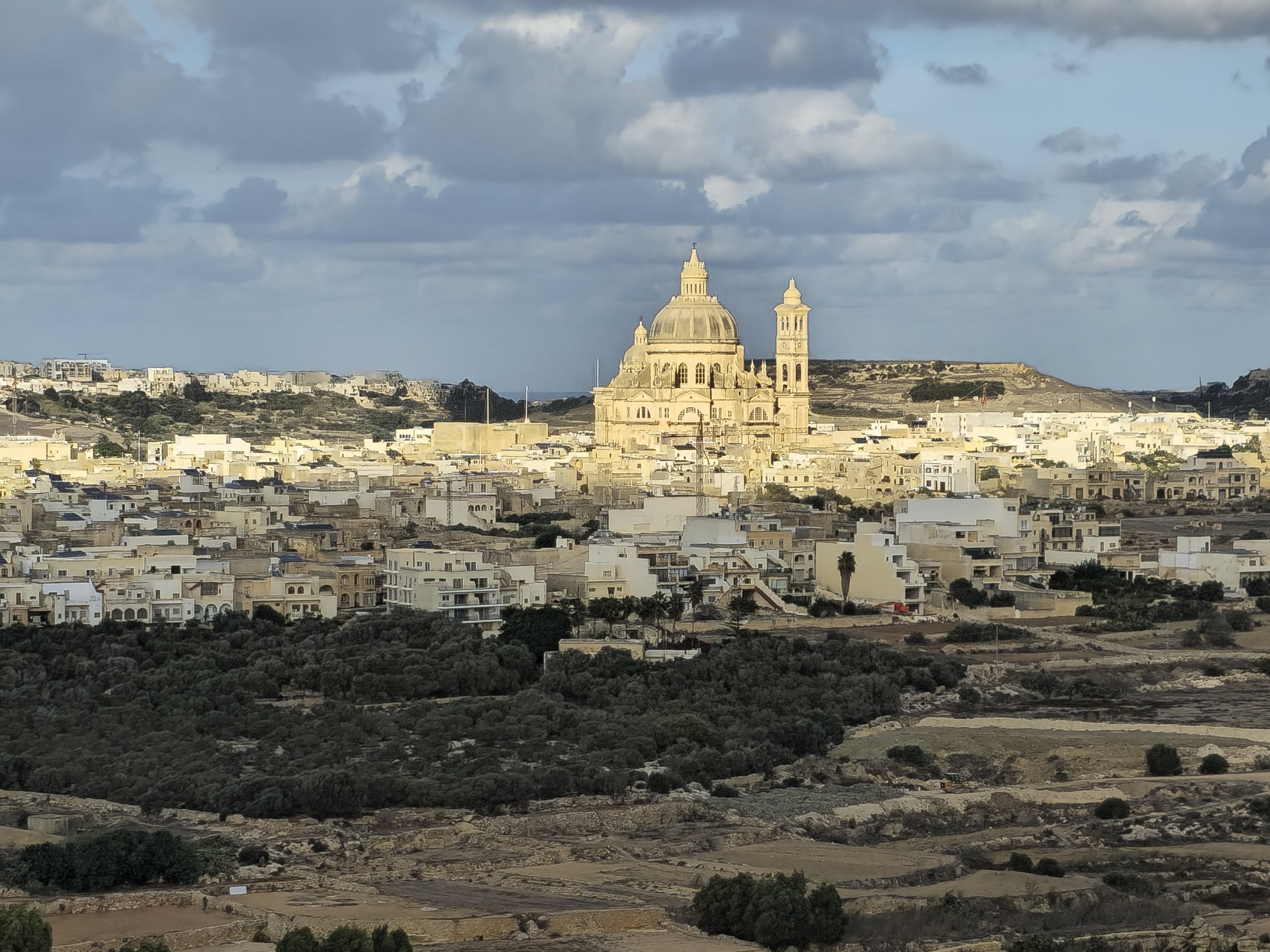 Kirken er et naturlig landemerke på hele den østlige delen av Gozo og kan derfor sees fra mange steder.