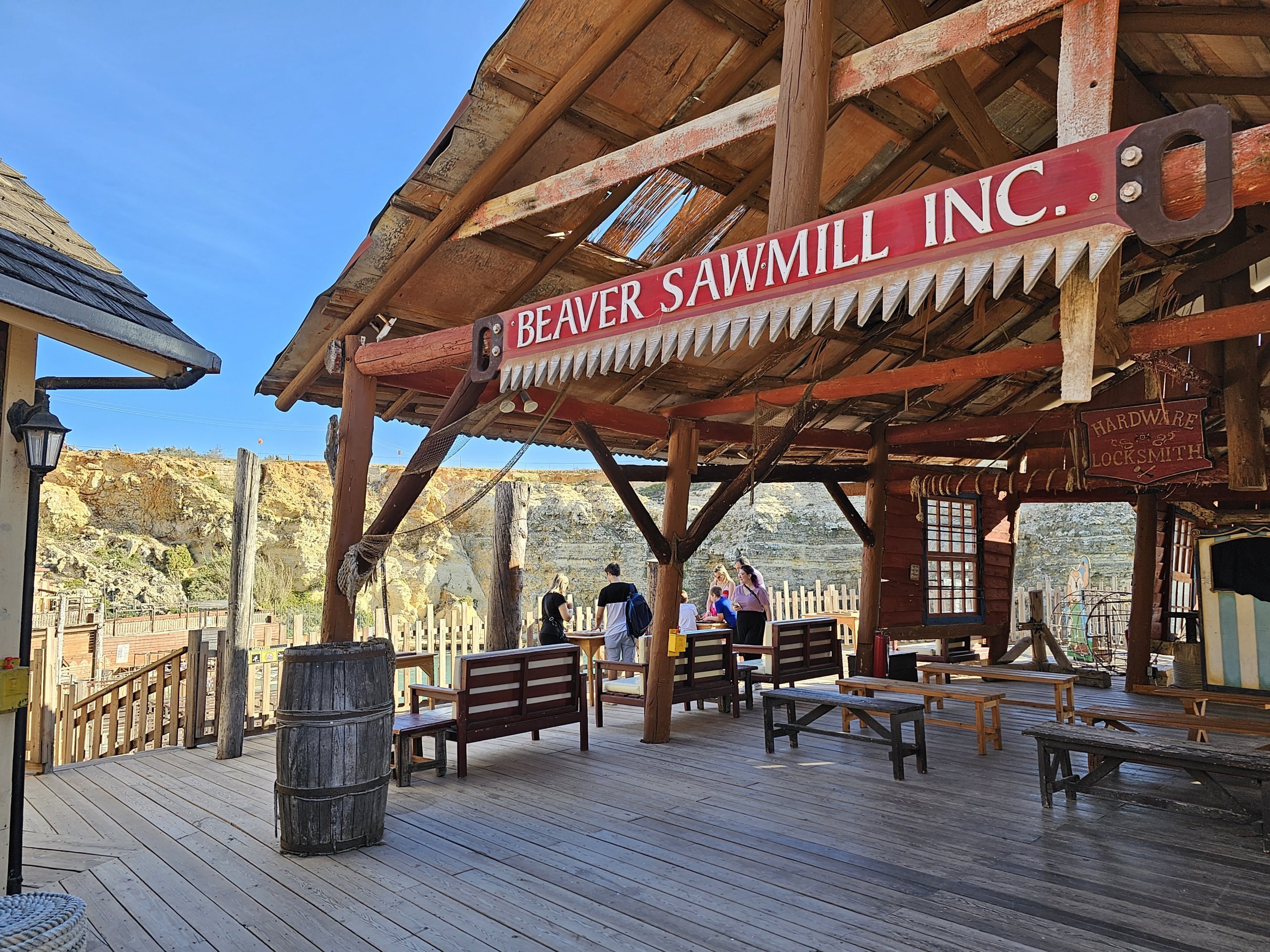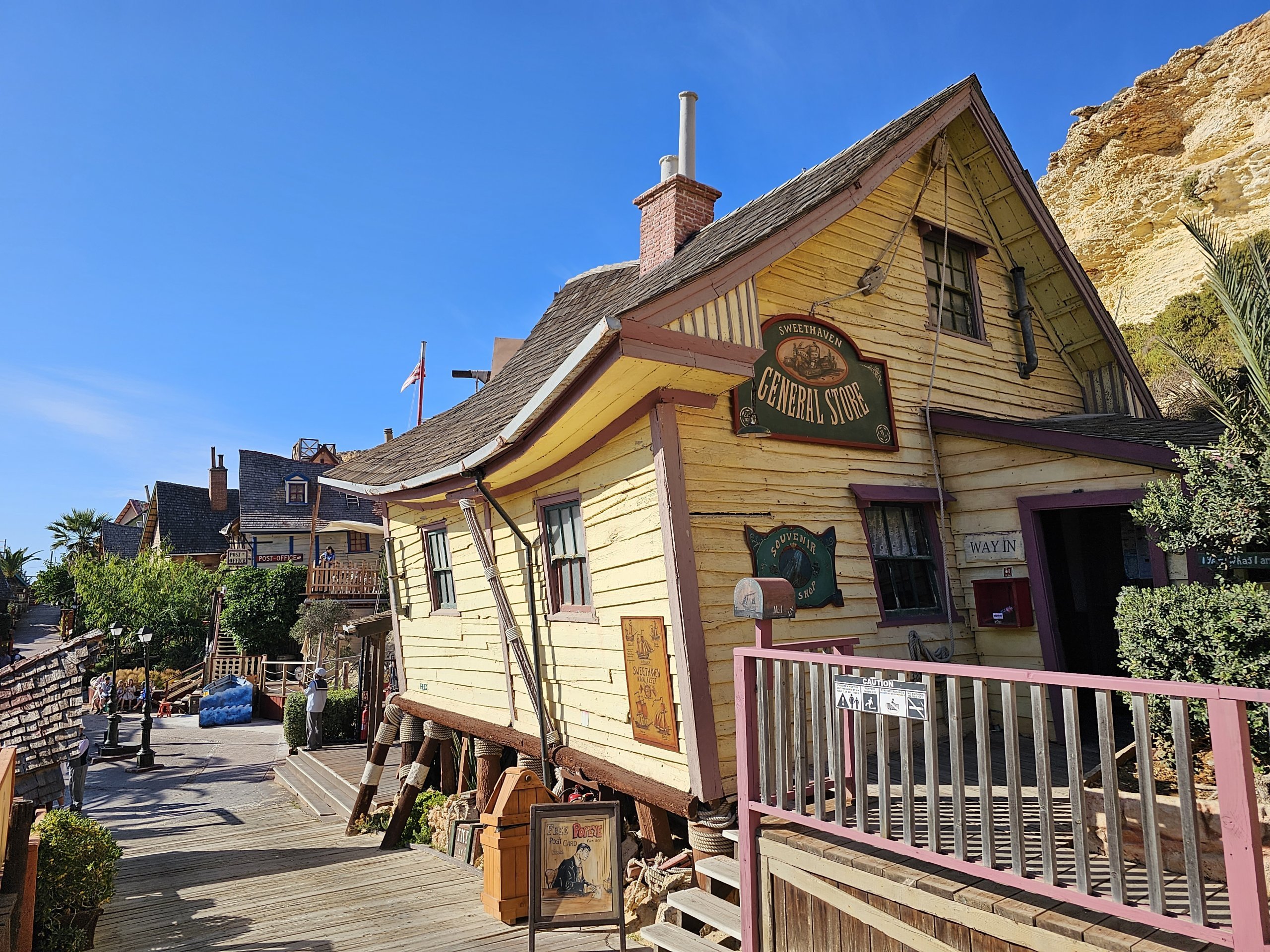 Filmkulissene suppleres av suvenirbutikker, restauranter, barer og en kino som viser utdrag fra filmen "Popeye the Sailor".
