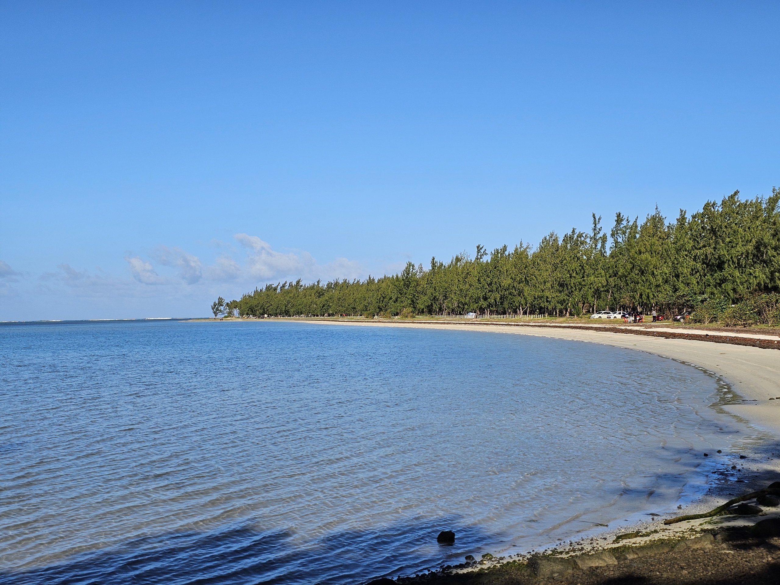 Du kan faktisk parkere nesten hvor som helst langs stranden, for selv etter at asfaltveien tar slutt, går det en skogssti videre langs kysten som tar deg til foten av fjellet Le Morne Brabant.
