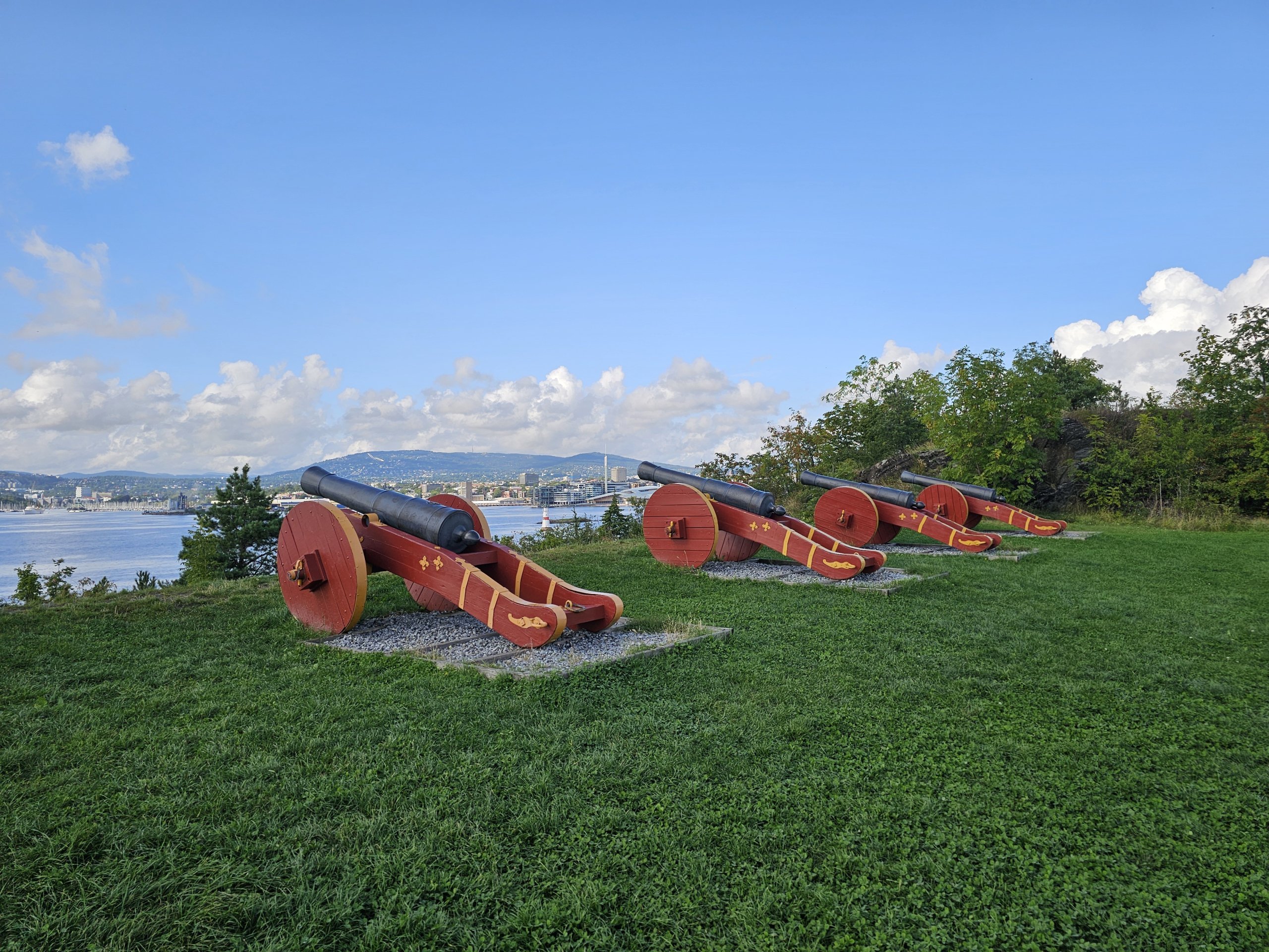 På øyas høyeste punkt lå det også en gang i tiden en utpost til Akershus hovedfestning i sentrum av byen, og der finnes det fortsatt historiske kanoner.