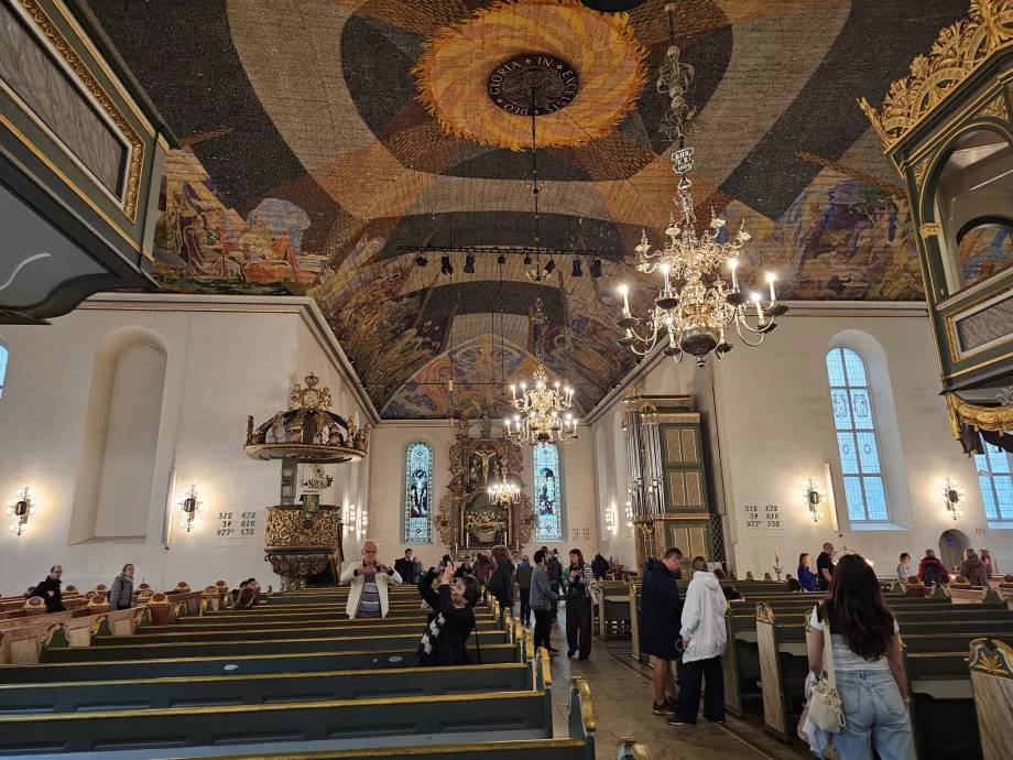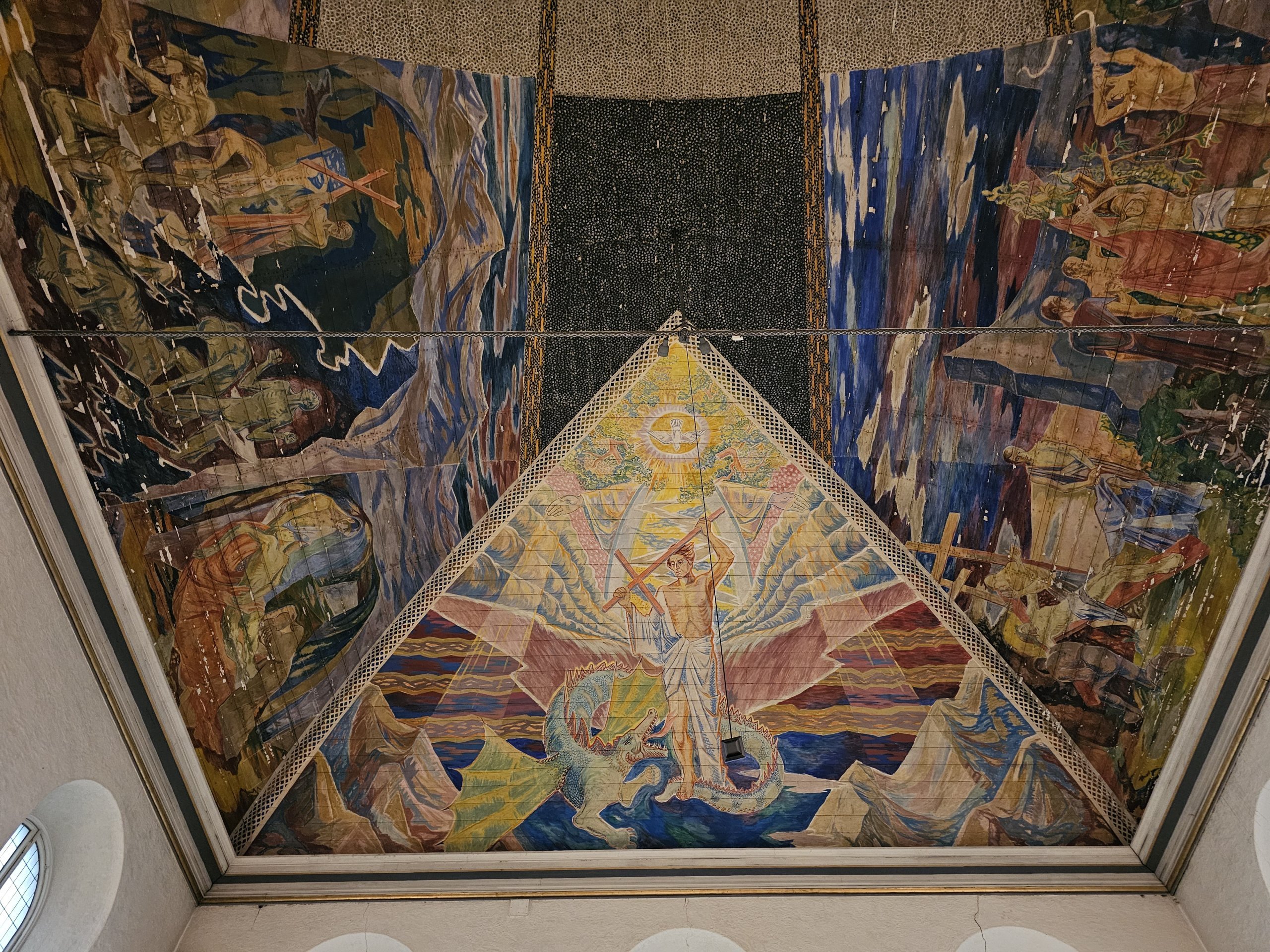 Interiøret i katedralen er storslått, og spesielt bemerkelsesverdig er de vakre, moderne maleriene og freskene i taket fra 1960-tallet.
