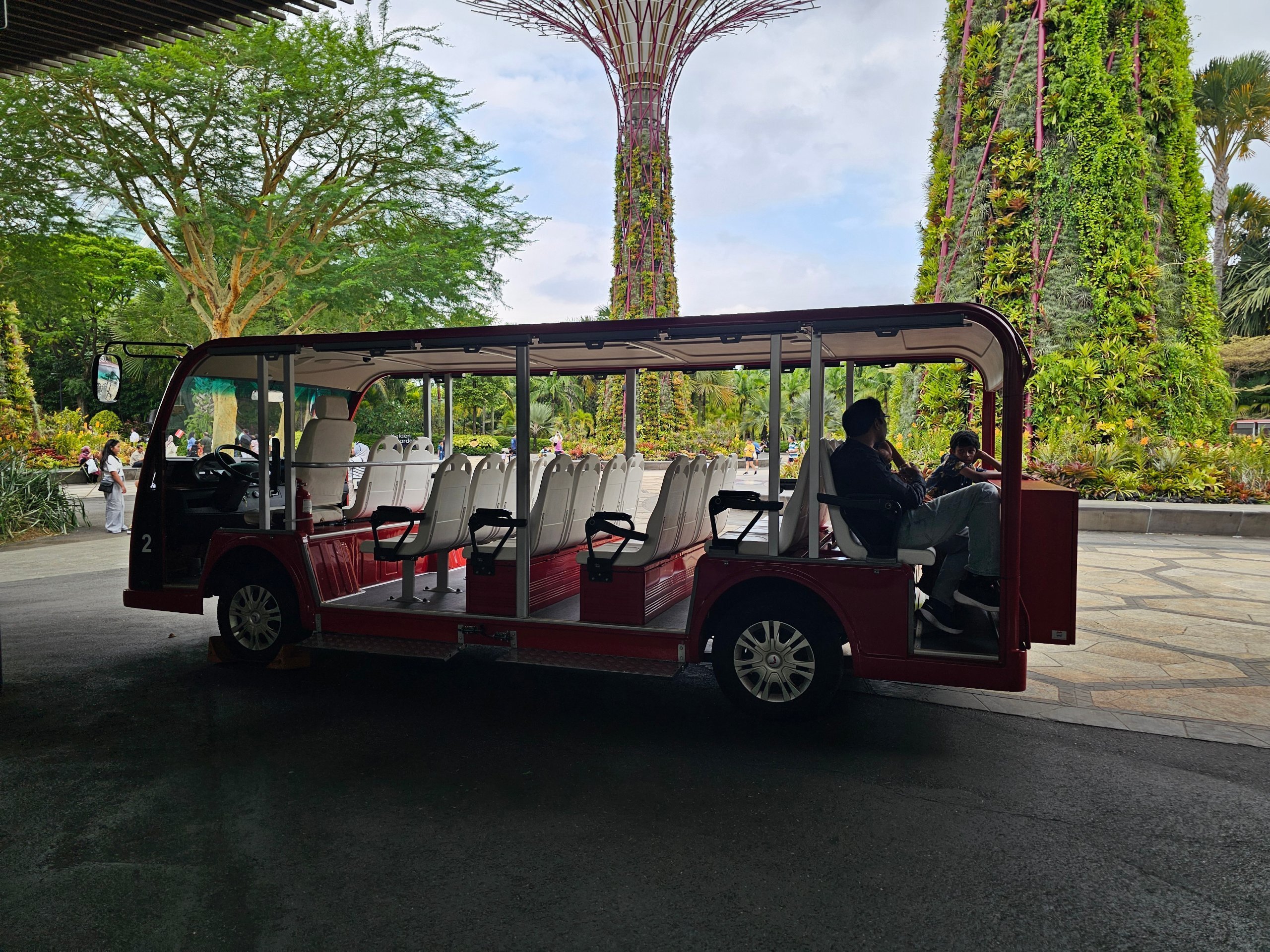 Fra hovedinngangen, som ligger på sørsiden (på motsatt side av Marina Bay Sands-hotellet), kan du også betale for en tur med elektrisk tralle for 10 sgd. Ved inngangen finnes det også oppbevaringsbokser for bagasje.