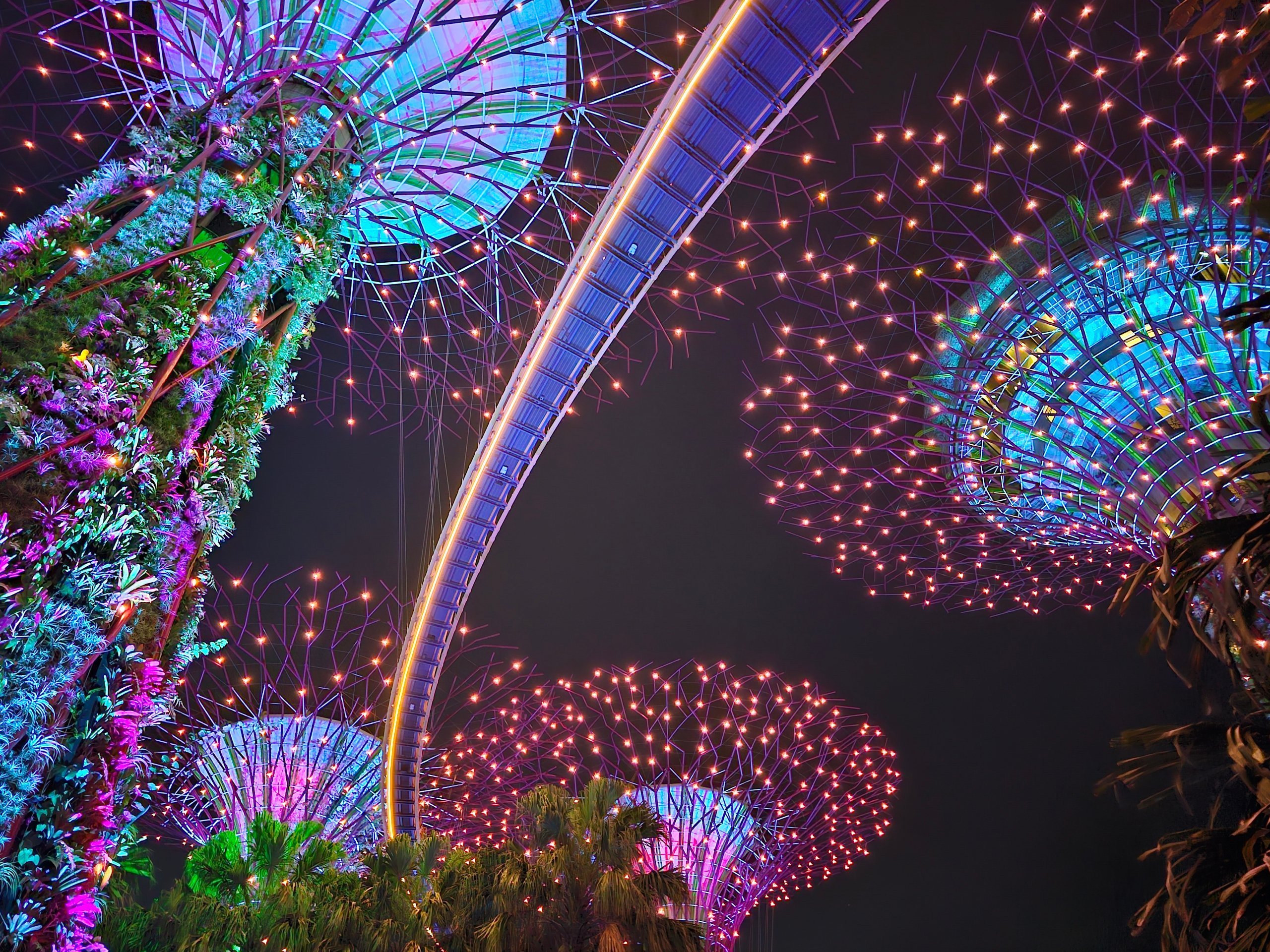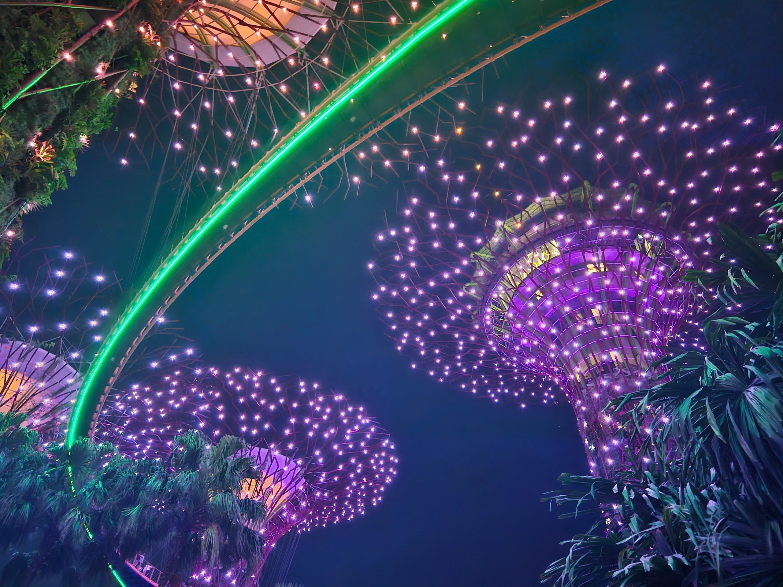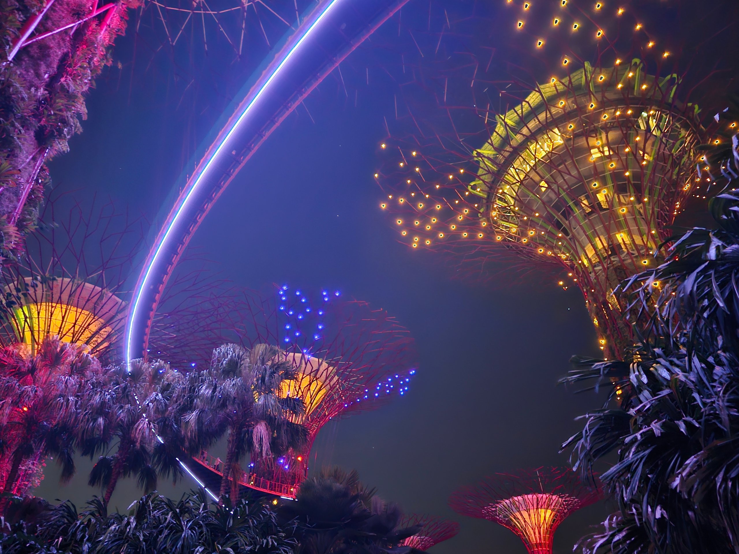 Hver dag finner lys- og musikkshowet Garden Rhapsody sted blant Supertrees. Trærne lyser gradvis opp, skifter farger, og det hele fungerer mye bedre enn man skulle tro ut fra bildene alene.