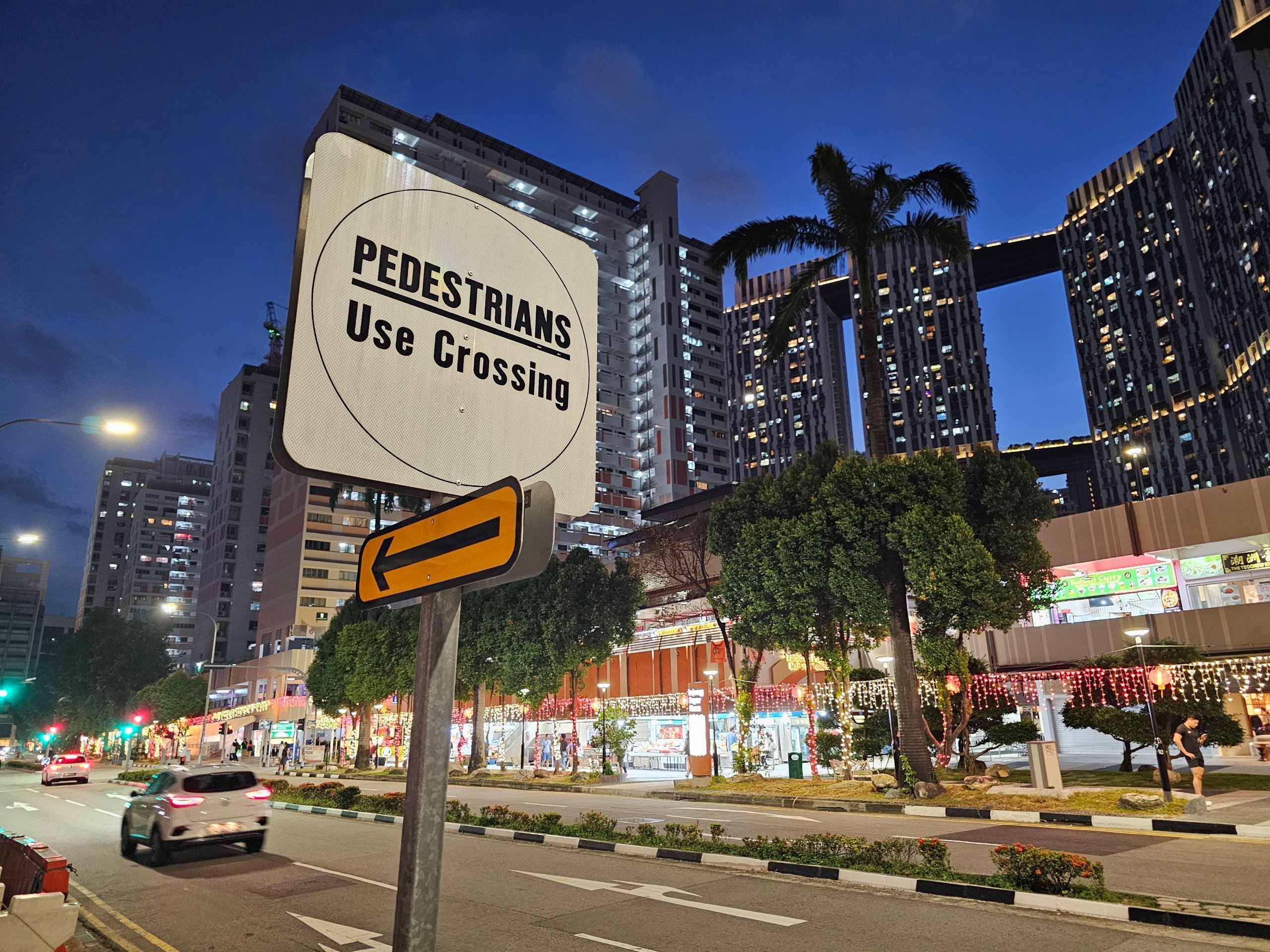 ❗ I Singapore er det ulovlig å krysse gaten utenfor fotgjengeroverganger under trussel om store bøter på opptil hundrevis av singaporedollar. Men i virkeligheten så vi ganske mange fotgjengere som krysset gatene utenfor trafikklysene.