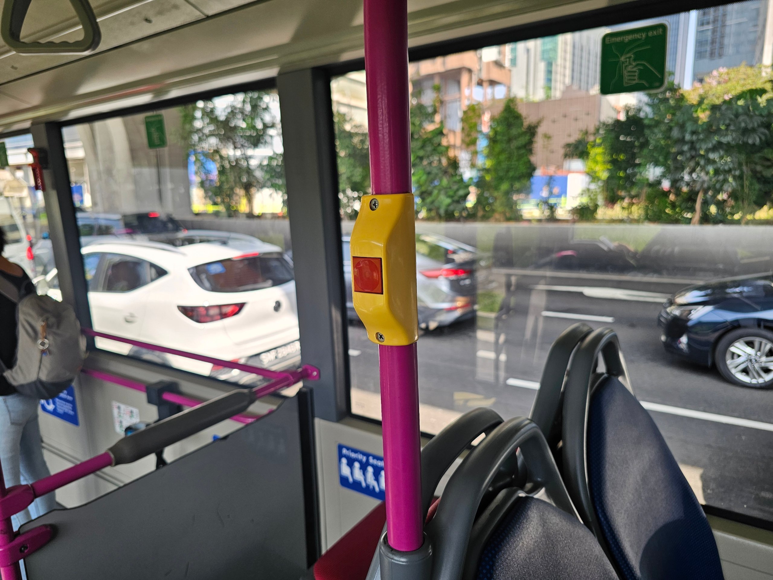 Hvis du vil gå av, må du trykke på stoppknappen. Hvis du ikke gjør det, kan bussen passere holdeplassen.