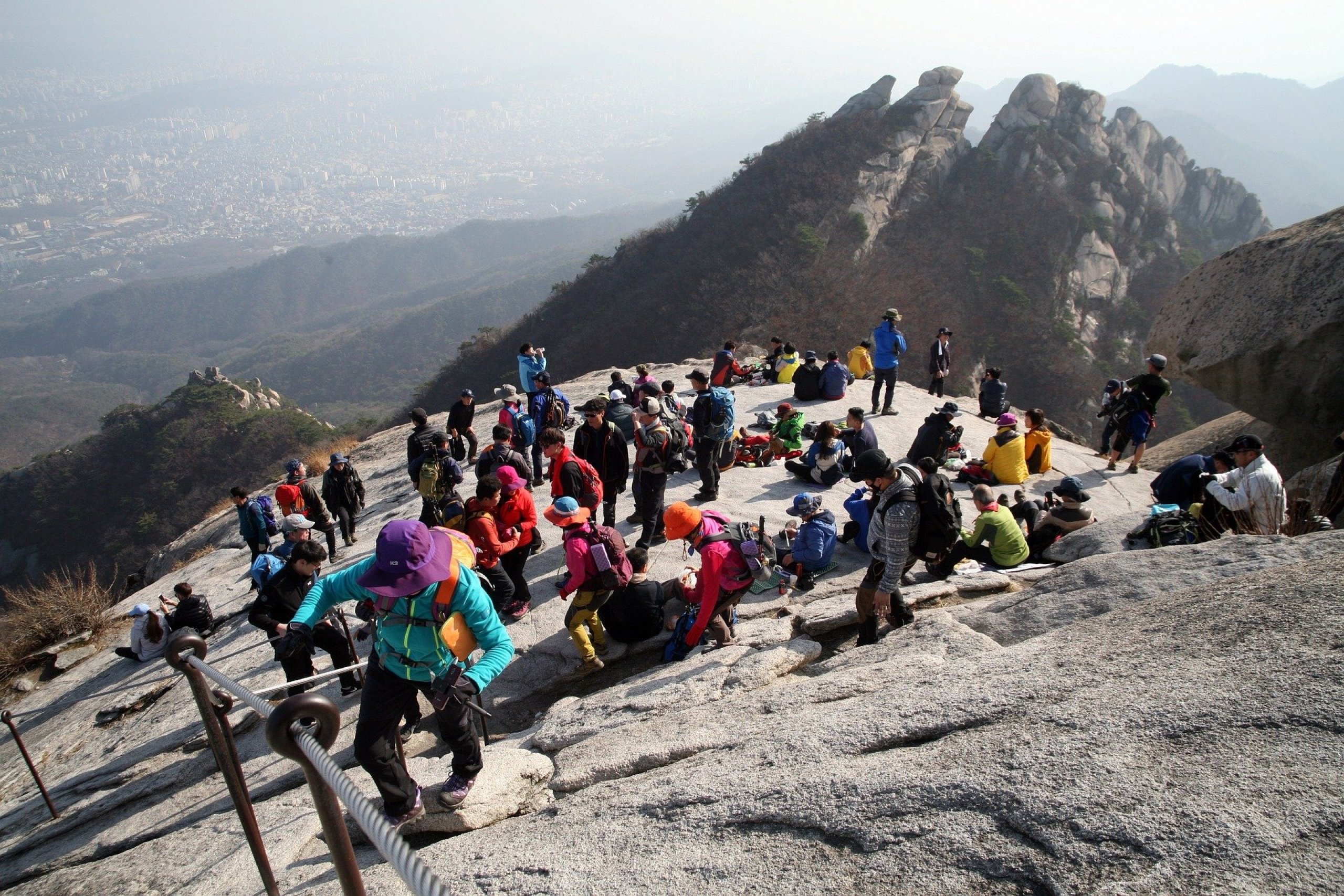 - Til det høyeste fjellet, Baegundae, fra den automatiske metrostasjonen Bukhansan UI - en travel rute på 3,8 km i én retning, med mer stigning mot slutten, men likevel relativt behagelig