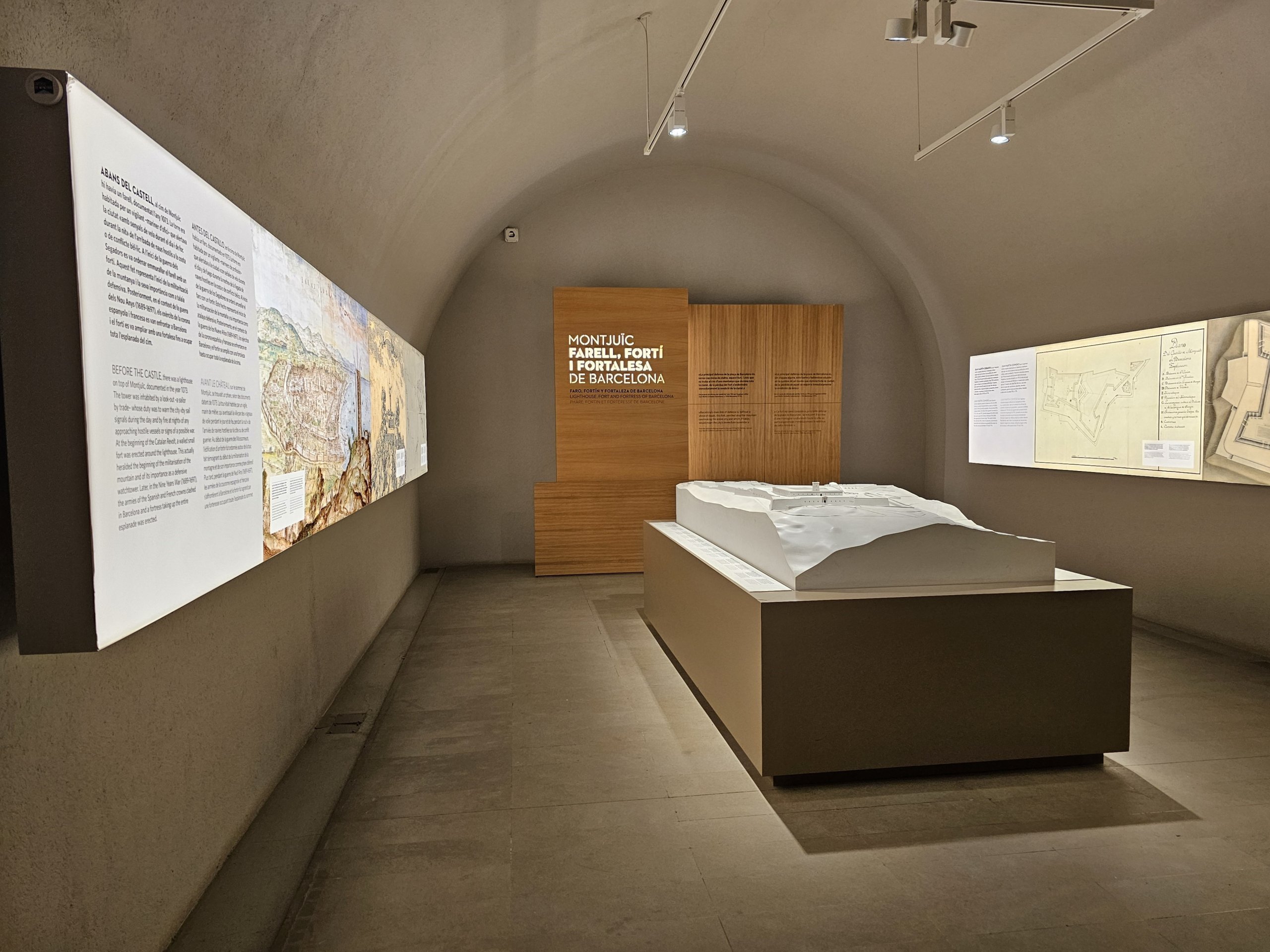 Inne i slottet kan du se små utstillinger om slottets og Barcelonas historie, men også om de naturlige forholdene på Montjuïc-høyden.