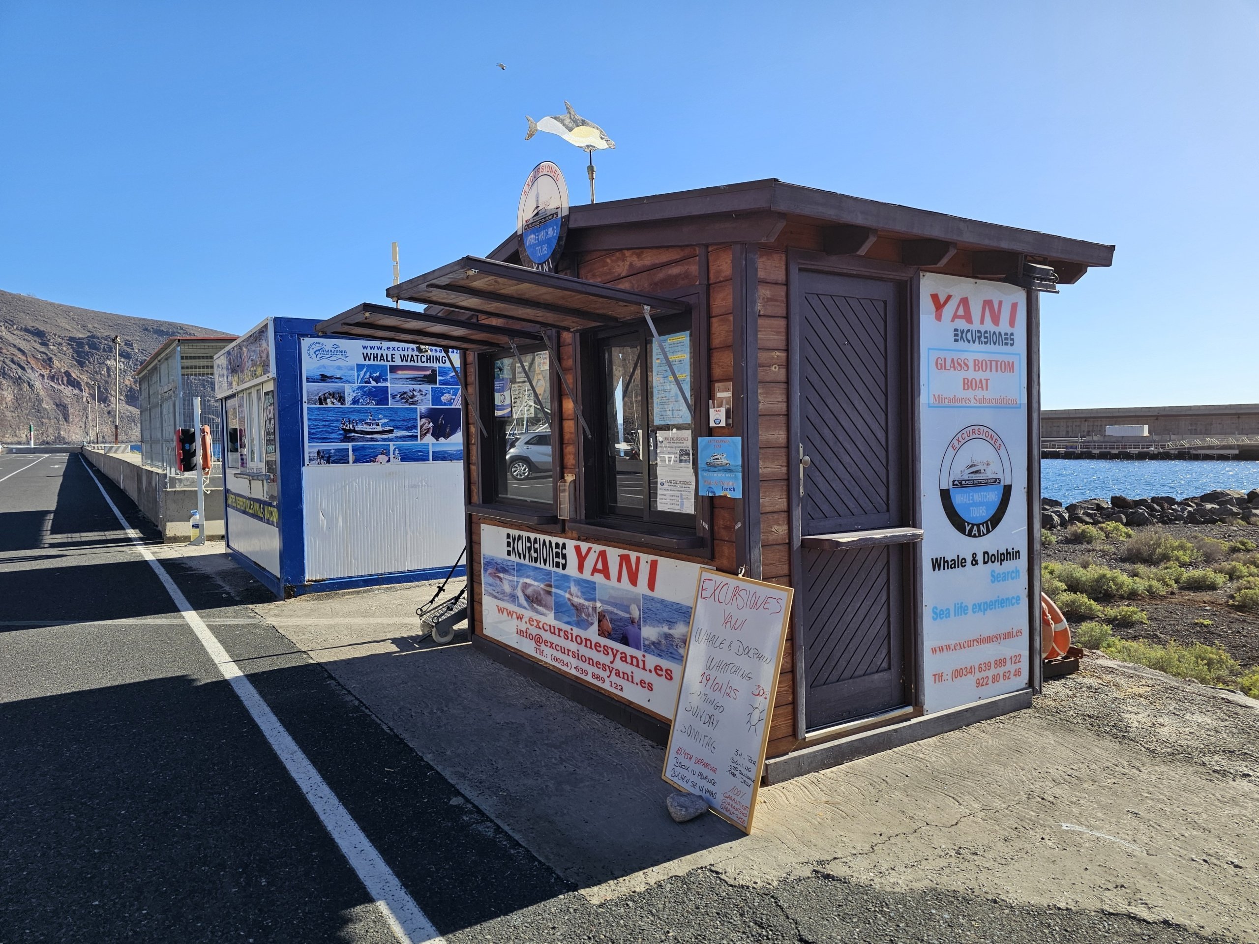 Turistbyråene som arrangerer hvalsafari, holder hovedsakelig til utenfor fergekaien i Valle Gran Rey i Vueltas-området.