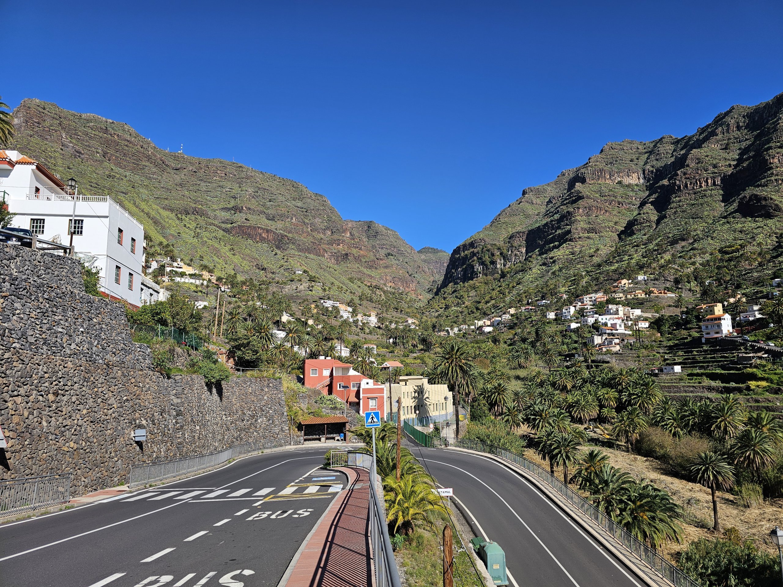 Valle Gran Rey nås via en vakker hovedvei som går ned fra fjellene til havet gjennom en dyp dal via mange serpentinveier og flere tunneler.