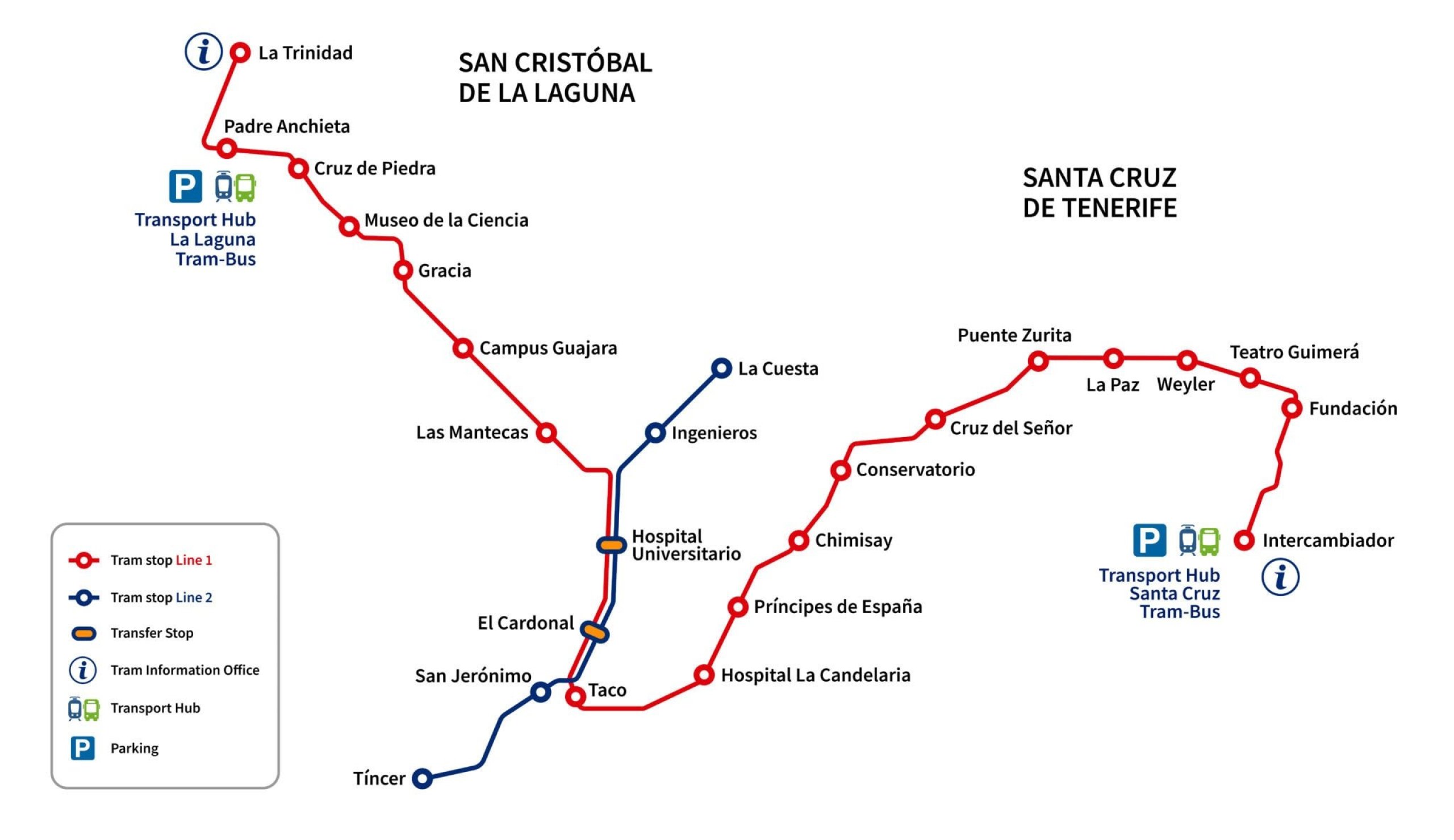 Det finnes to trikkelinjer i Santa Cruz de Tenerife: