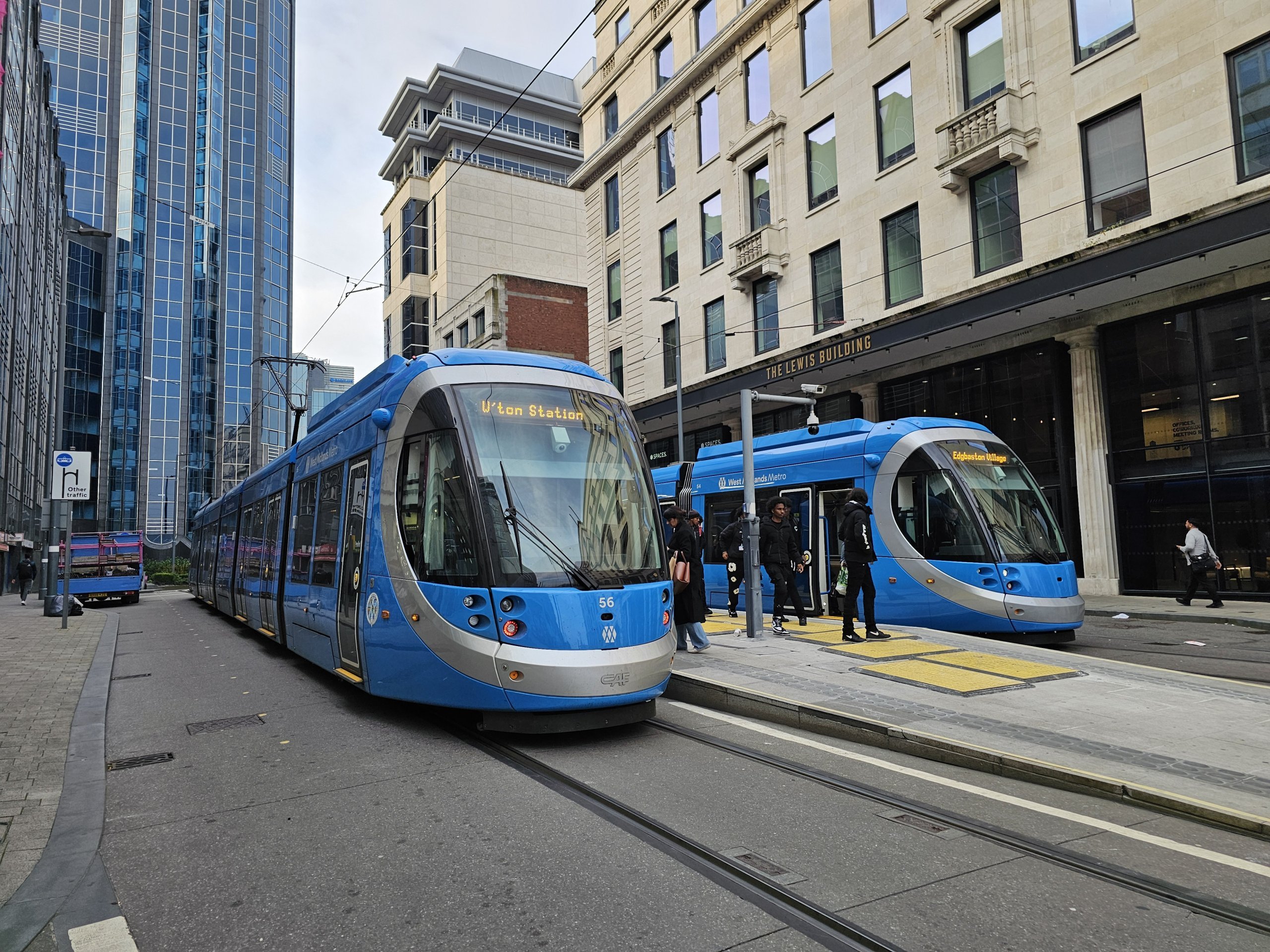 En enkelt trikkelinje kalles "West Midlands Metro" og går tvers gjennom sentrum fra Edgbaston via Brindleyplace, Victoria Square, Birmingham New Street stasjon og fortsetter deretter nordover gjennom West Bromwich, Wednesbury til Wolverhampton.