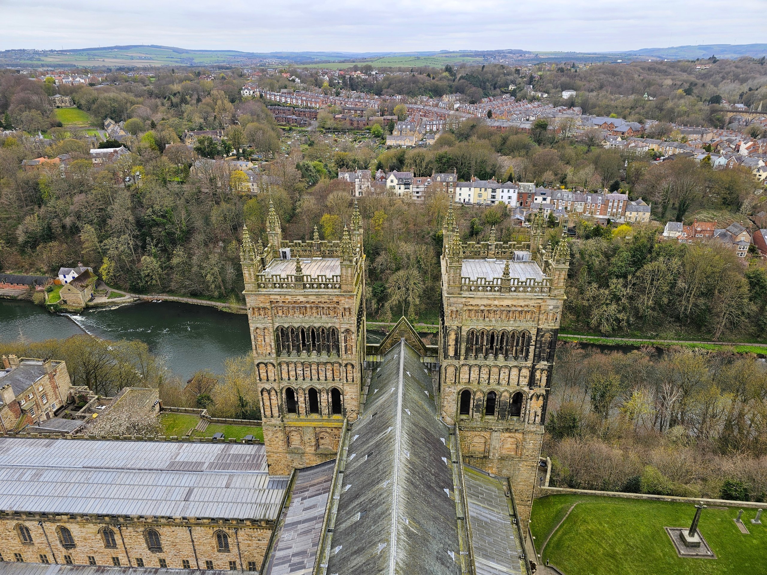 Den beste utsikten over katedralen og sentrum har man fra Mountjoy Hill i den østlige utkanten av byen eller fra Wharton Park nær jernbanestasjonen.