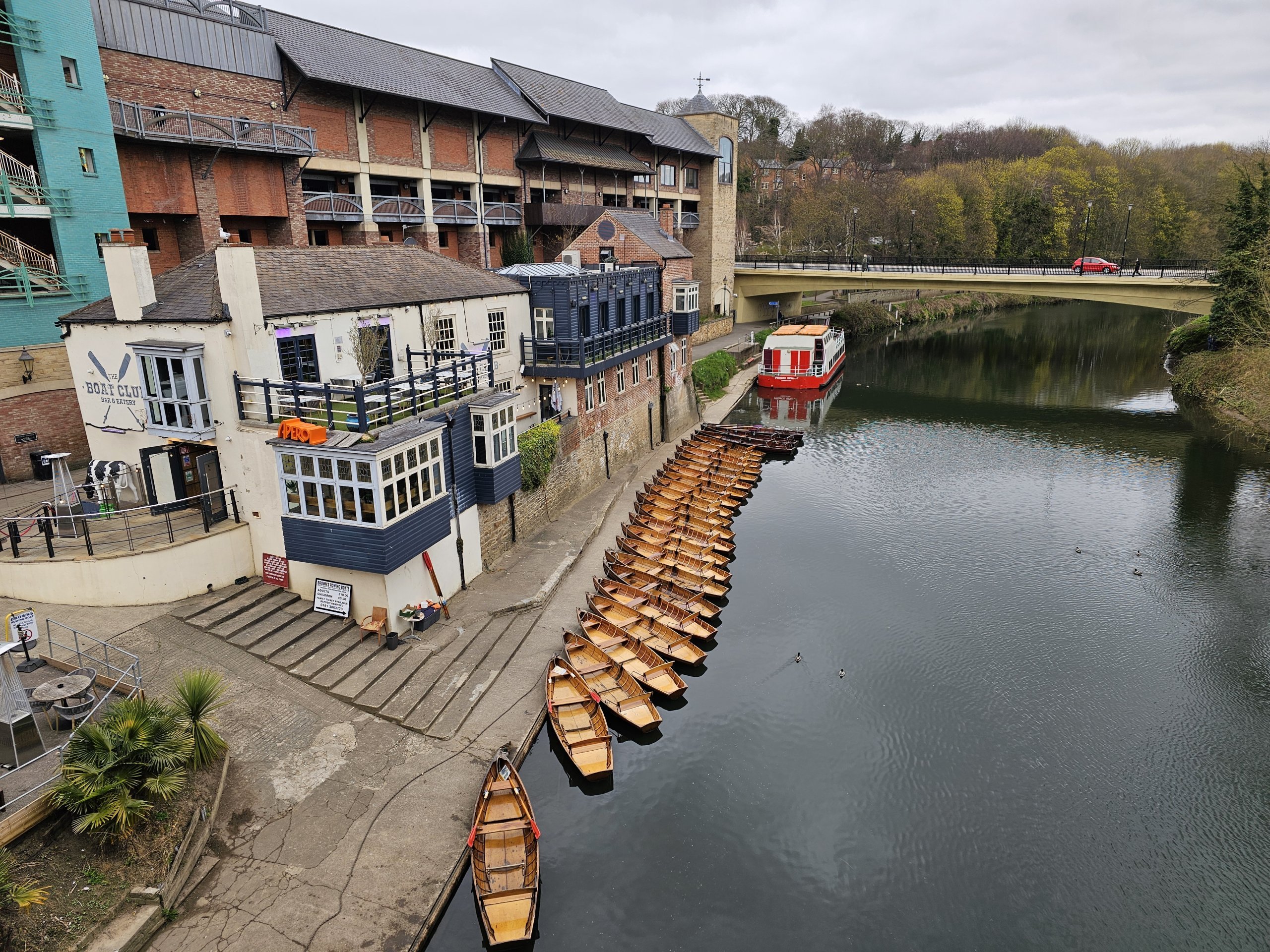 Under Elvet Bridge i sentrum ligger det en roklubb hvor du kan leie en liten båt.