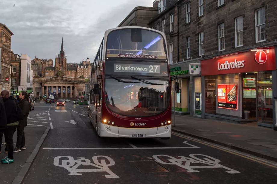 Lothian-bussene er det vanligste transportmiddelet i Edinburgh. De kjører regelmessig fra tidlig morgen til midnatt, og noen ruter går også om natten.