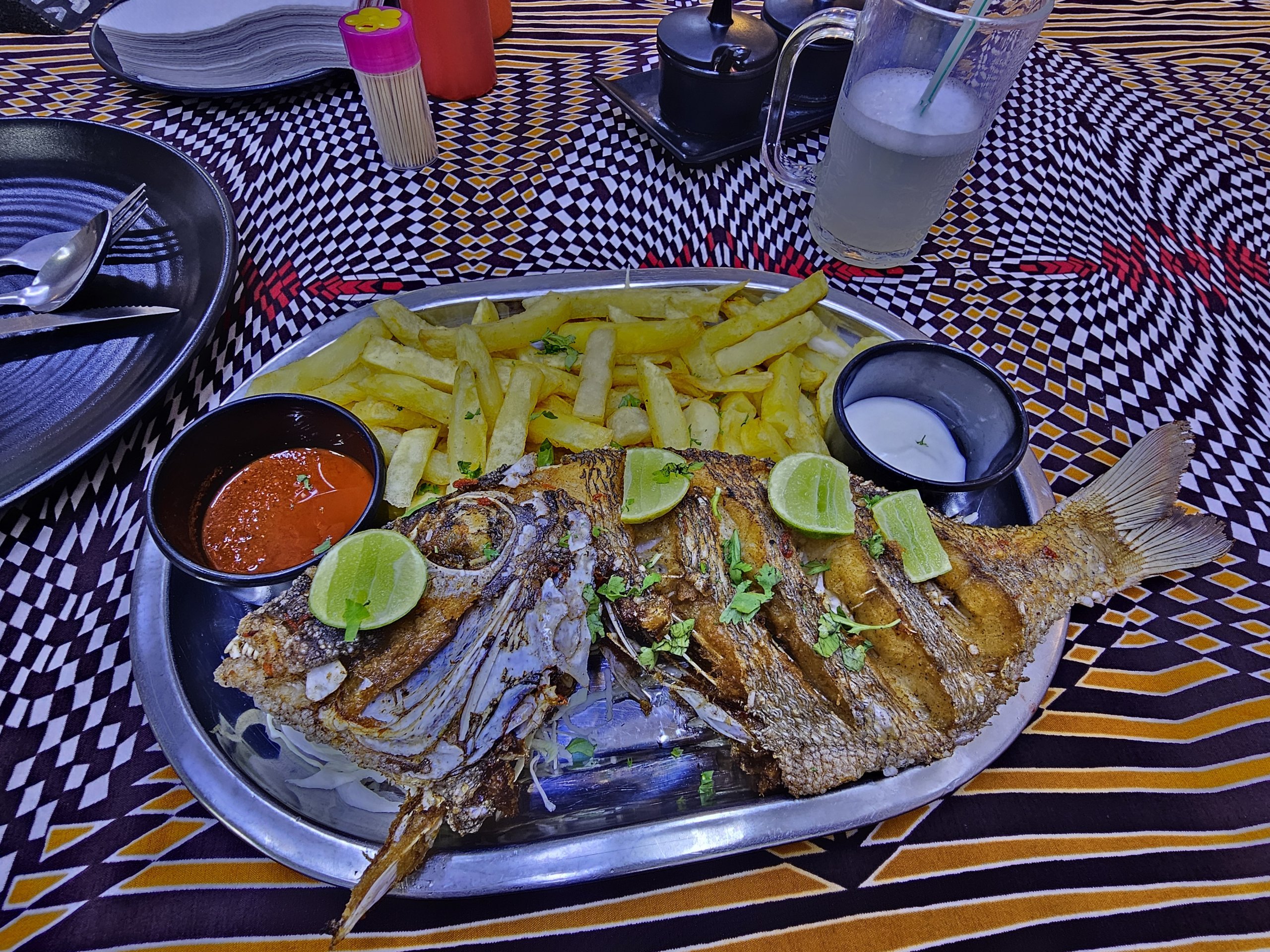 Jeg hadde imidlertid ingen problemer med gatematen under mitt besøk, og jeg spiste til og med fisk på markedene.